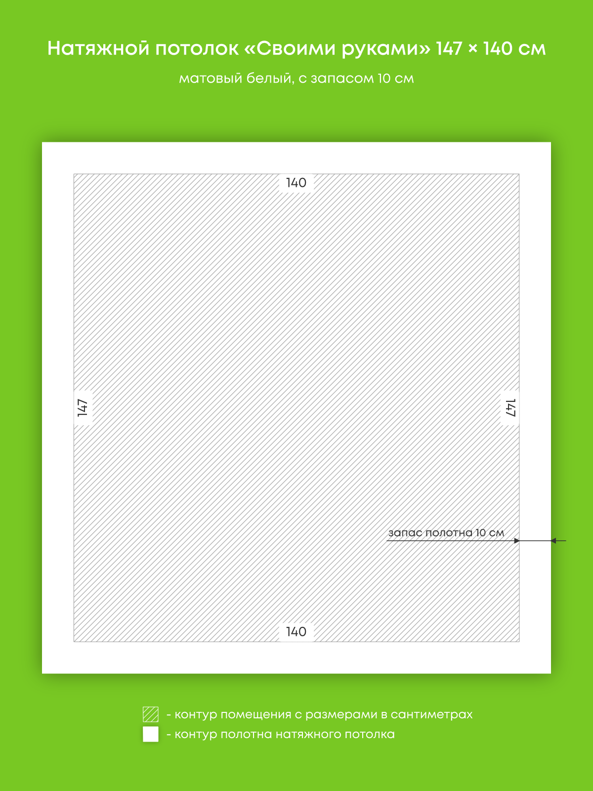 Натяжной потолок белый матовый, изготовленный по индивидуальным размерам покупателя, для ванной площадью 2.1 м2