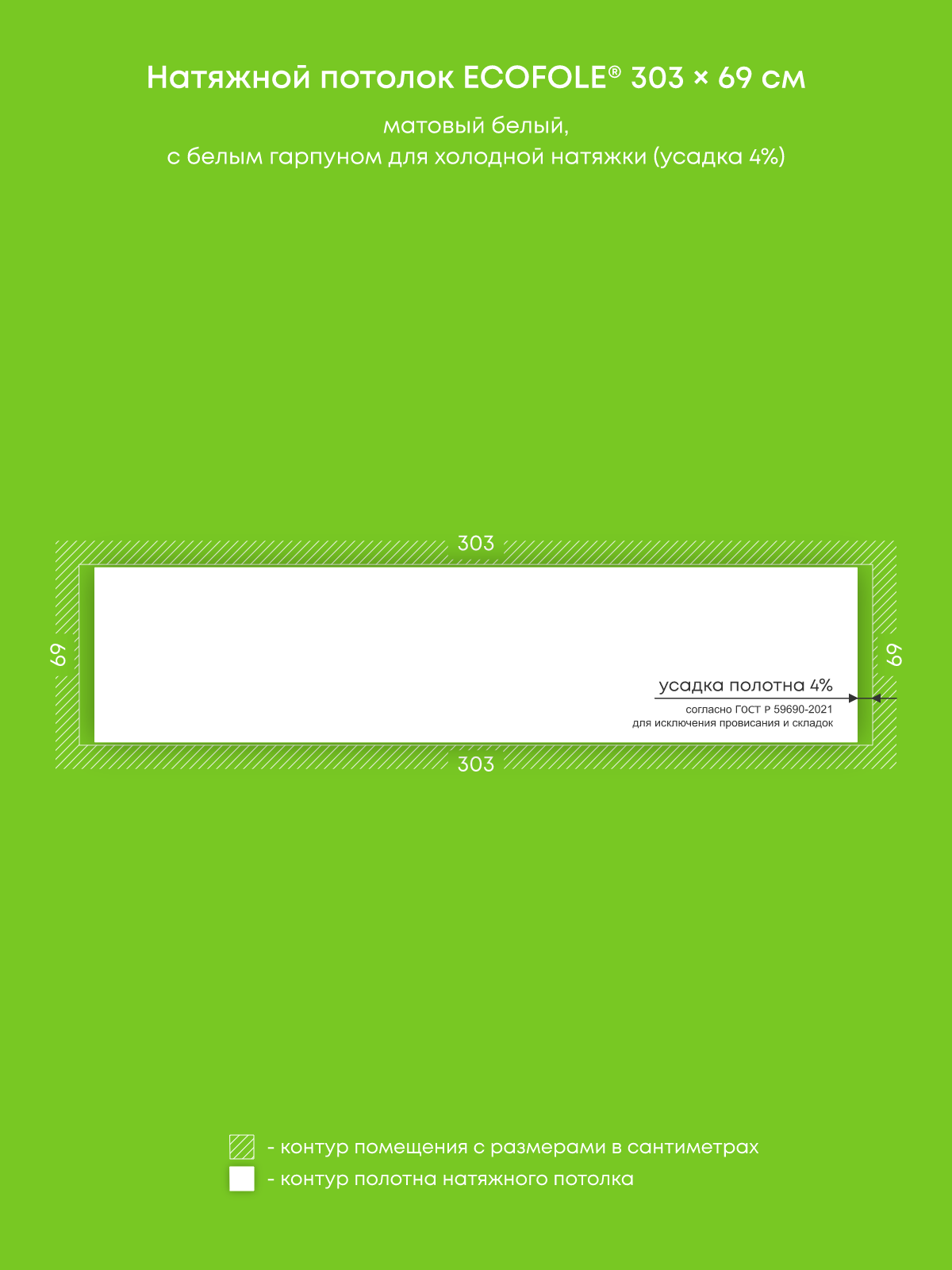 Натяжной потолок белый матовый, изготовленный по индивидуальным размерам покупателя, для помещения площадью 2.1 м2