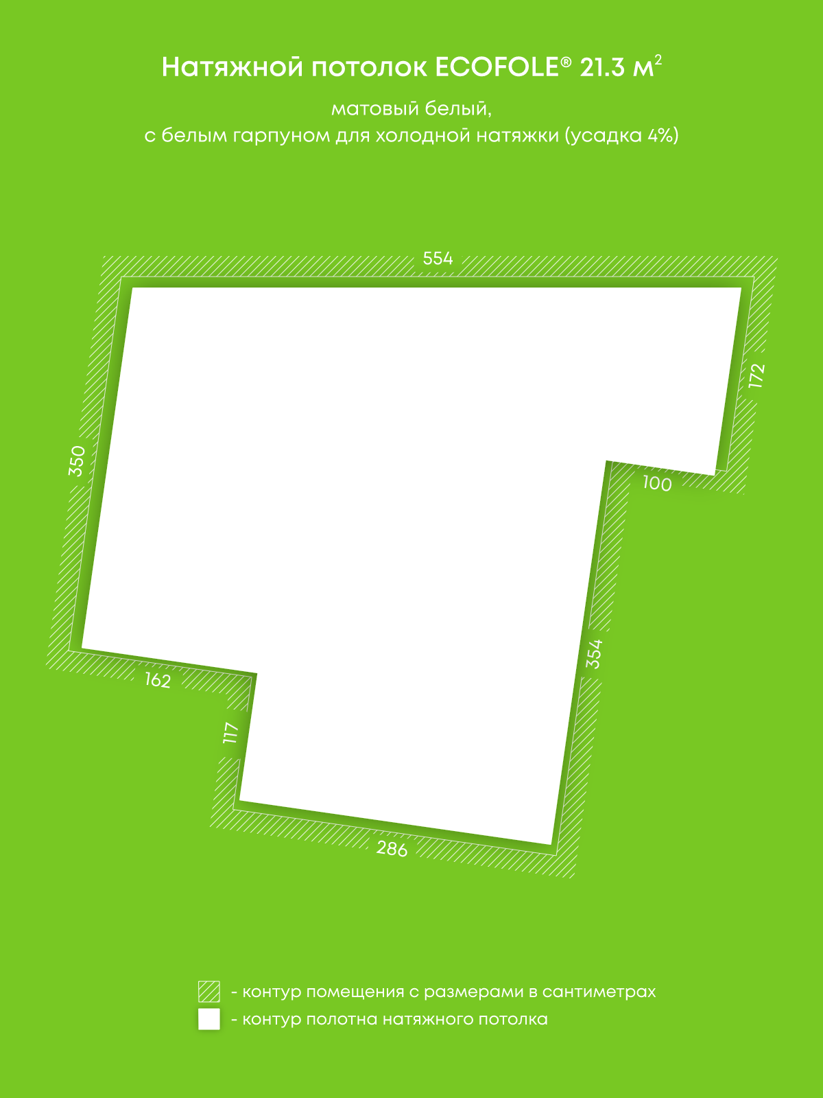 Матовый натяжной потолок 21.3 м2