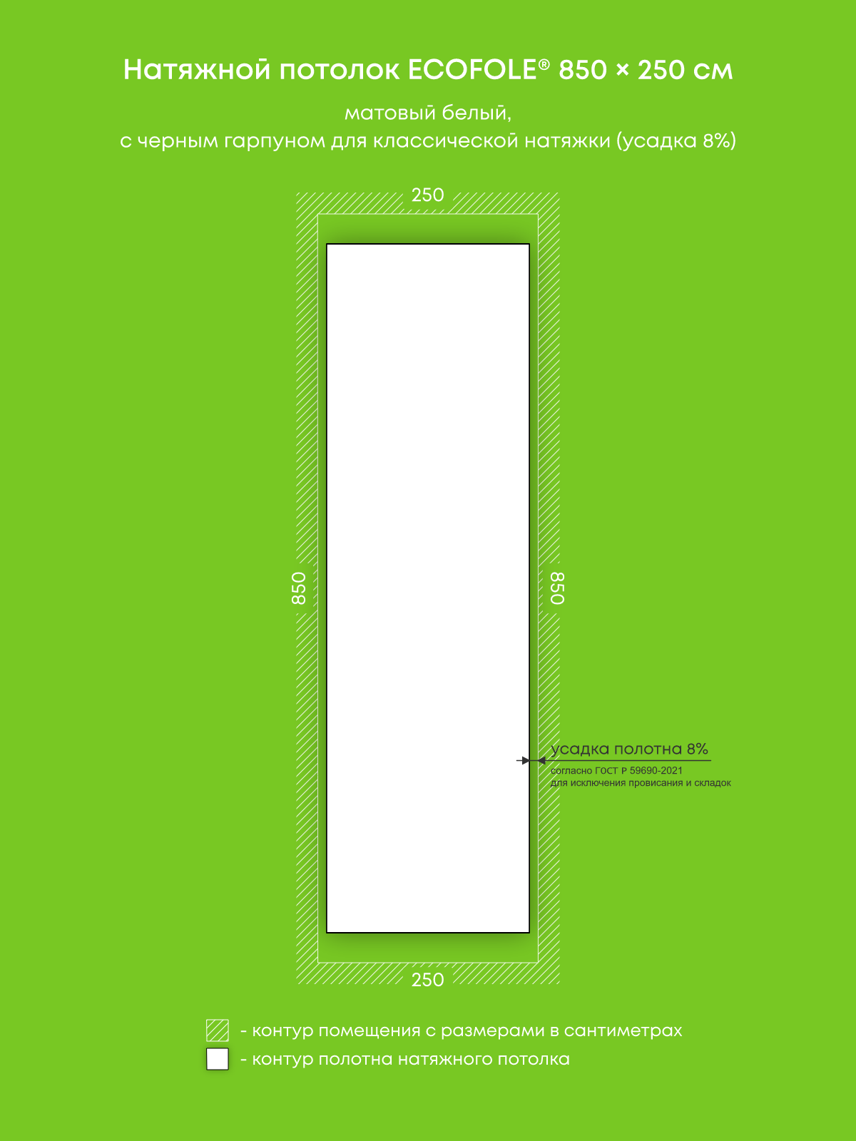 Натяжной потолок белый матовый, изготовленный по индивидуальным размерам покупателя, для помещения площадью 21.3 м2