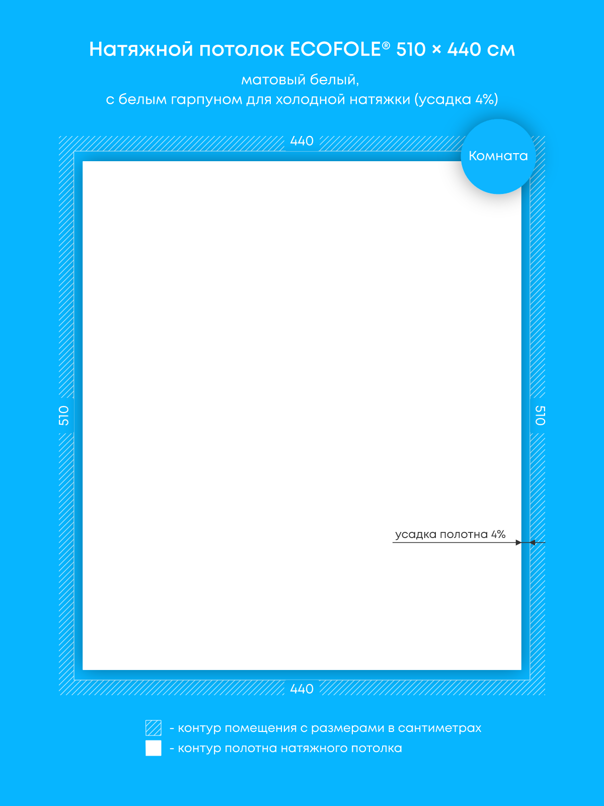 Натяжной потолок белый матовый, изготовленный по индивидуальным размерам покупателя, для комнаты площадью 22.4 м2