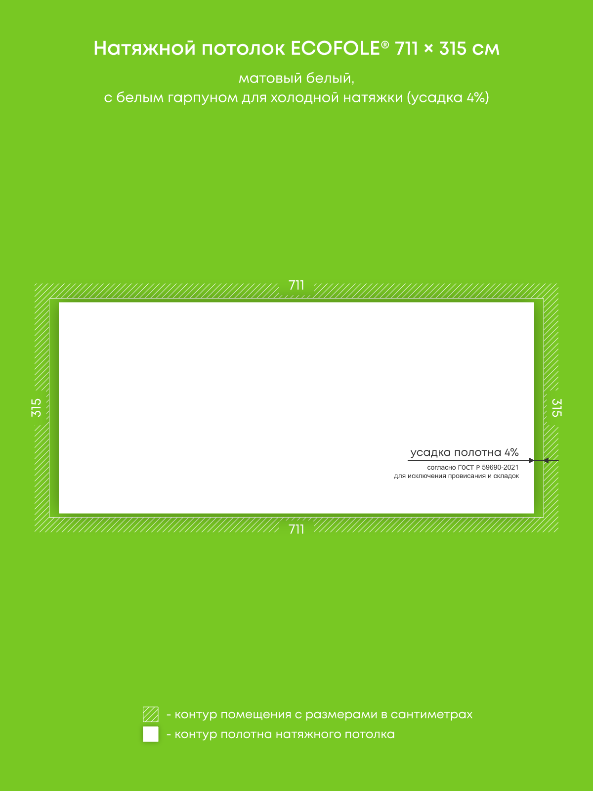 Натяжной потолок белый матовый, изготовленный по индивидуальным размерам покупателя, для гостиной площадью 22.4 м2
