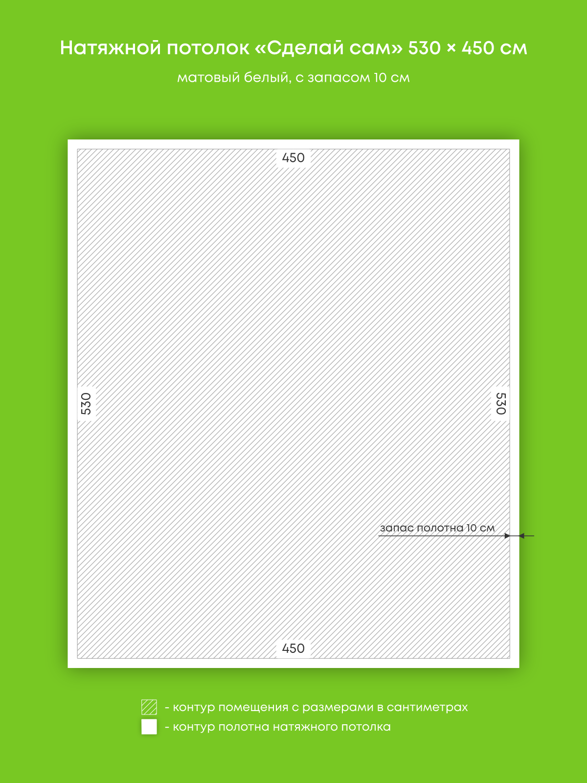 Натяжной потолок белый матовый, изготовленный по индивидуальным размерам покупателя, для комнаты площадью 23.9 м2