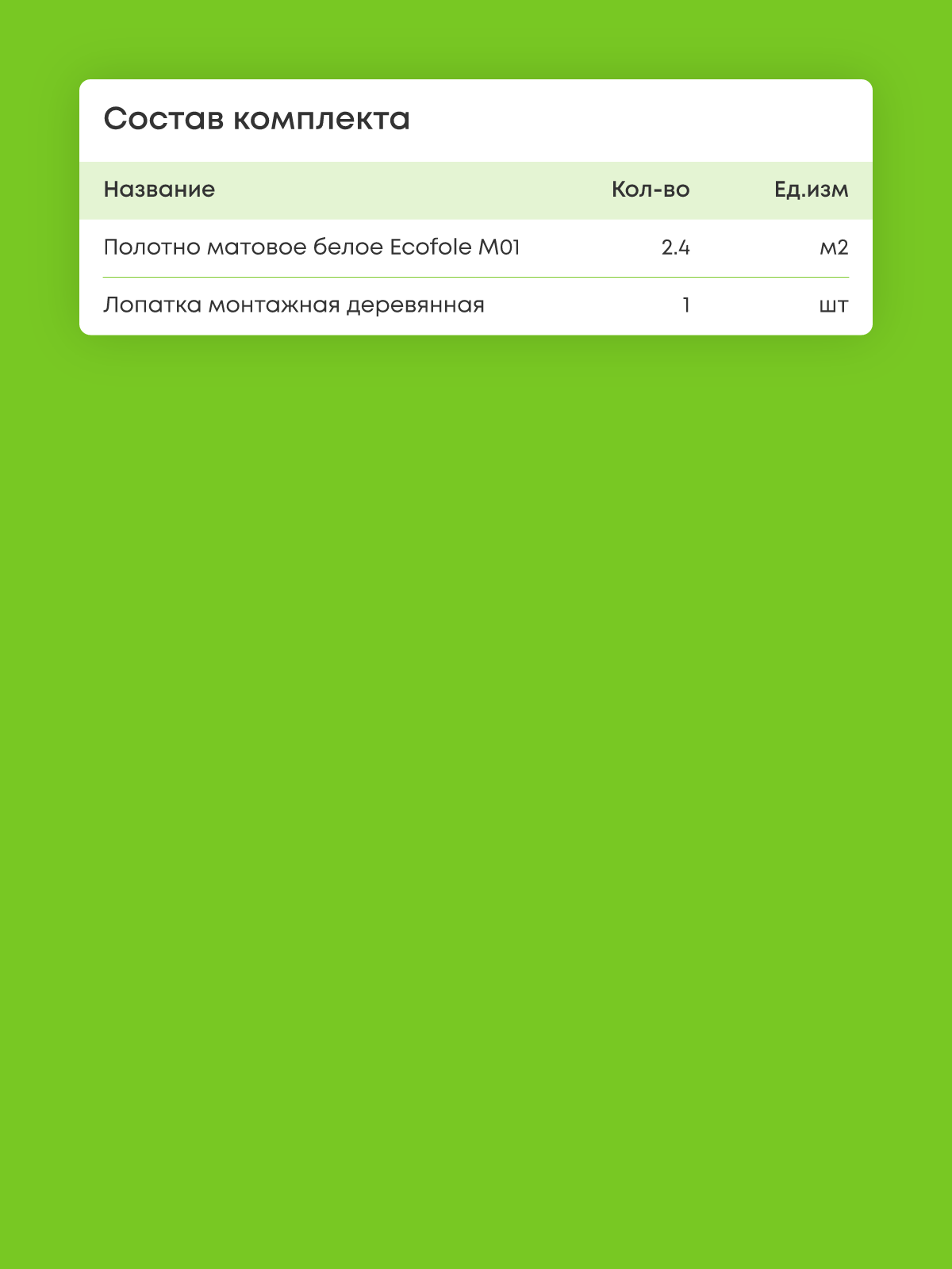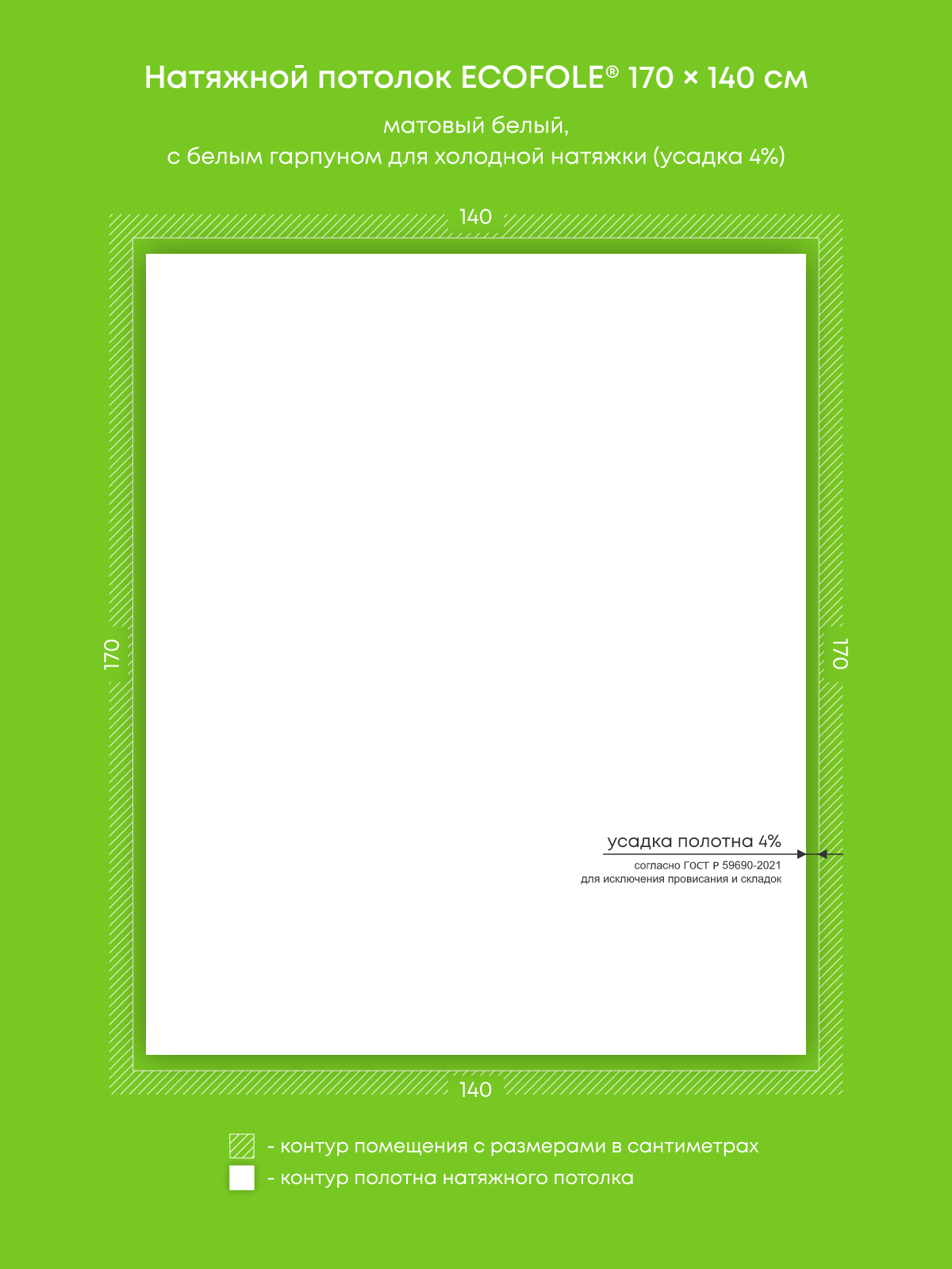 Натяжной потолок белый матовый, изготовленный по индивидуальным размерам покупателя, для помещения площадью 2.4 м2