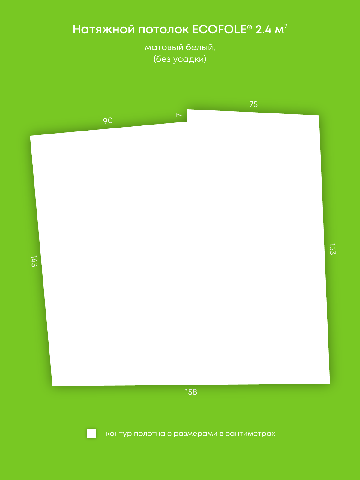 Натяжной потолок белый матовый, изготовленный по индивидуальным размерам покупателя, для помещения площадью 2.4 м2