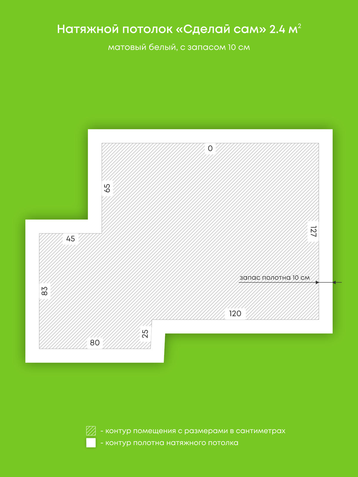 Натяжной потолок белый матовый, изготовленный по индивидуальным размерам покупателя, для ванной площадью 2.4 м2