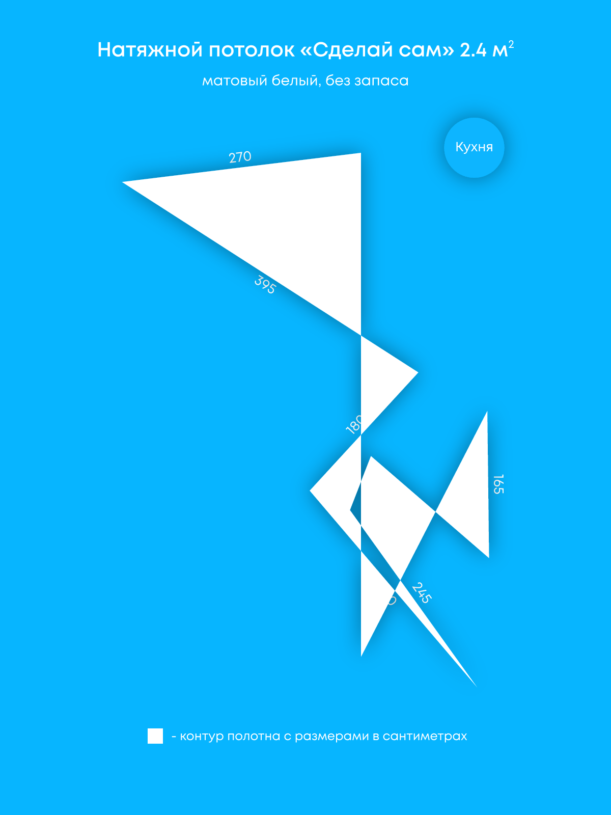 Натяжной потолок белый матовый, изготовленный по индивидуальным размерам покупателя, для кухни площадью 2.4 м2