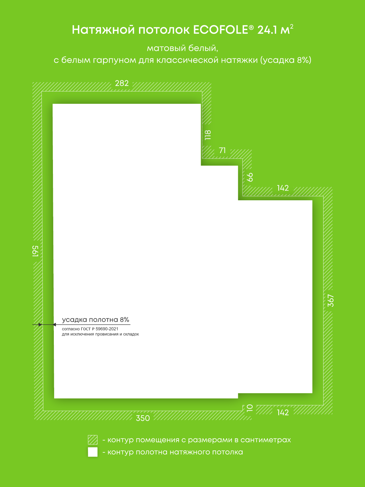 Матовый натяжной потолок 24.1 м2