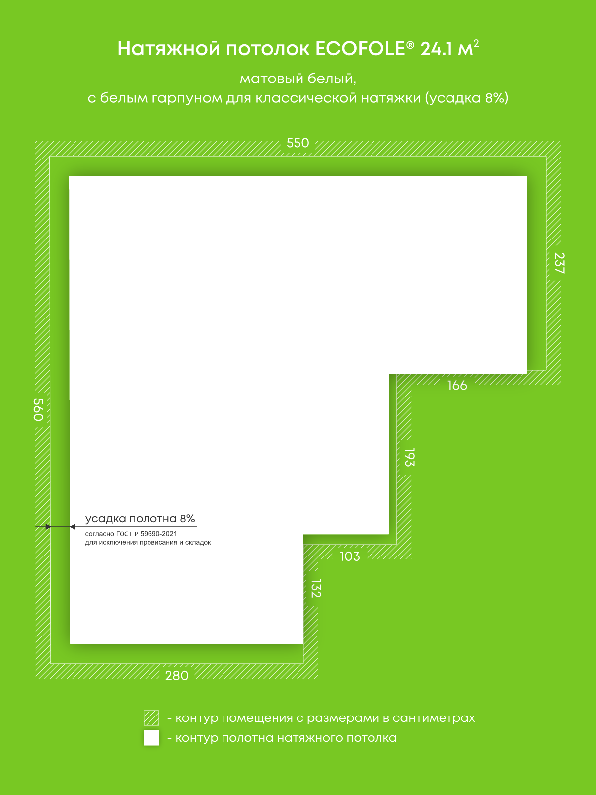 Матовый натяжной потолок 24.1 м2