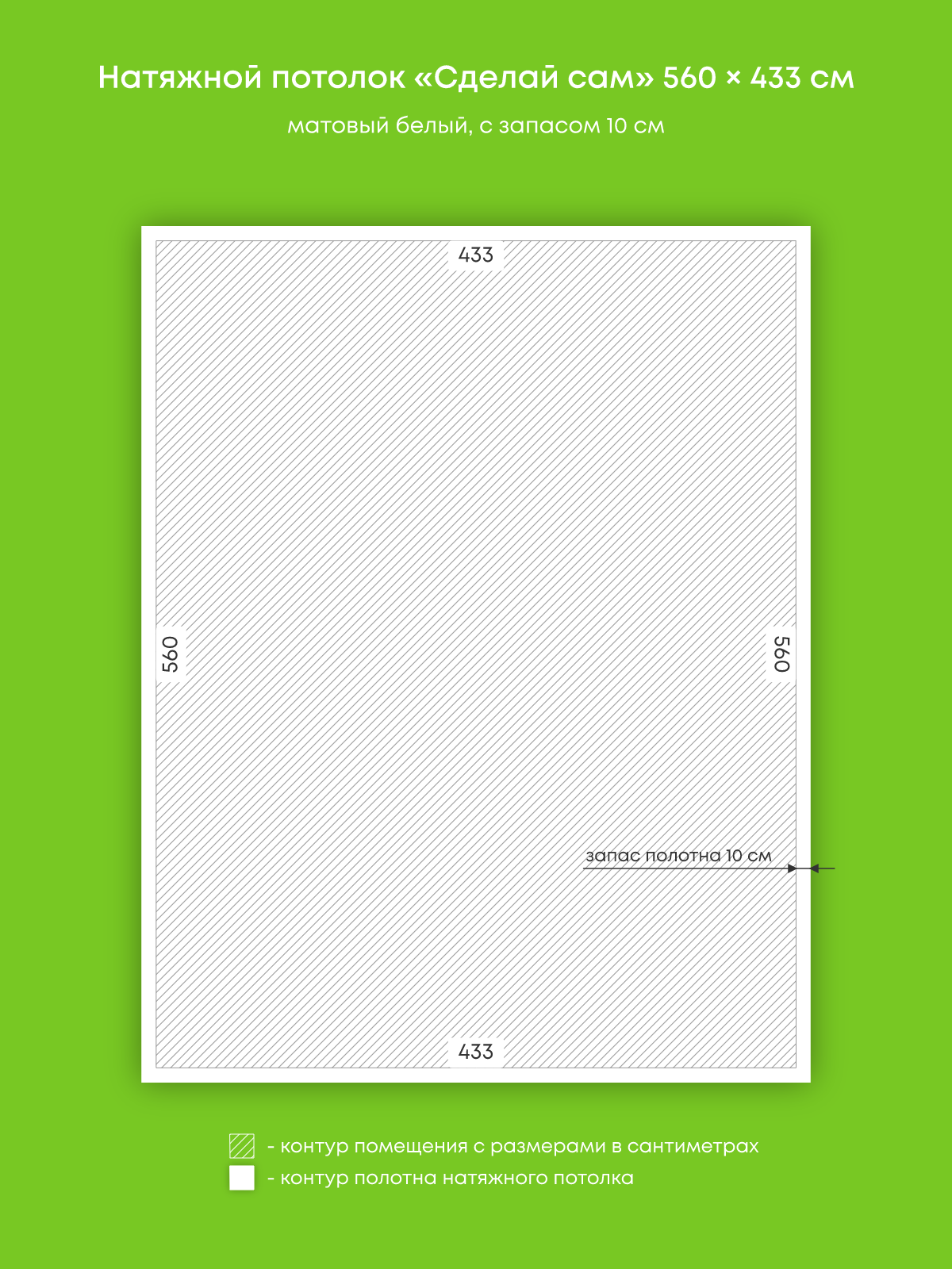 Натяжной потолок белый матовый, изготовленный по индивидуальным размерам покупателя, для кухни площадью 24.2 м2