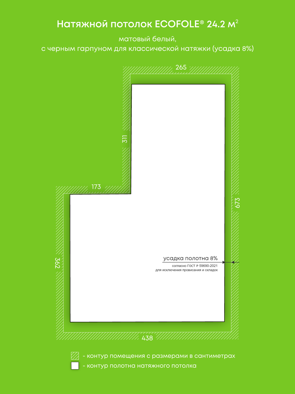 Матовый натяжной потолок 24.2 м2