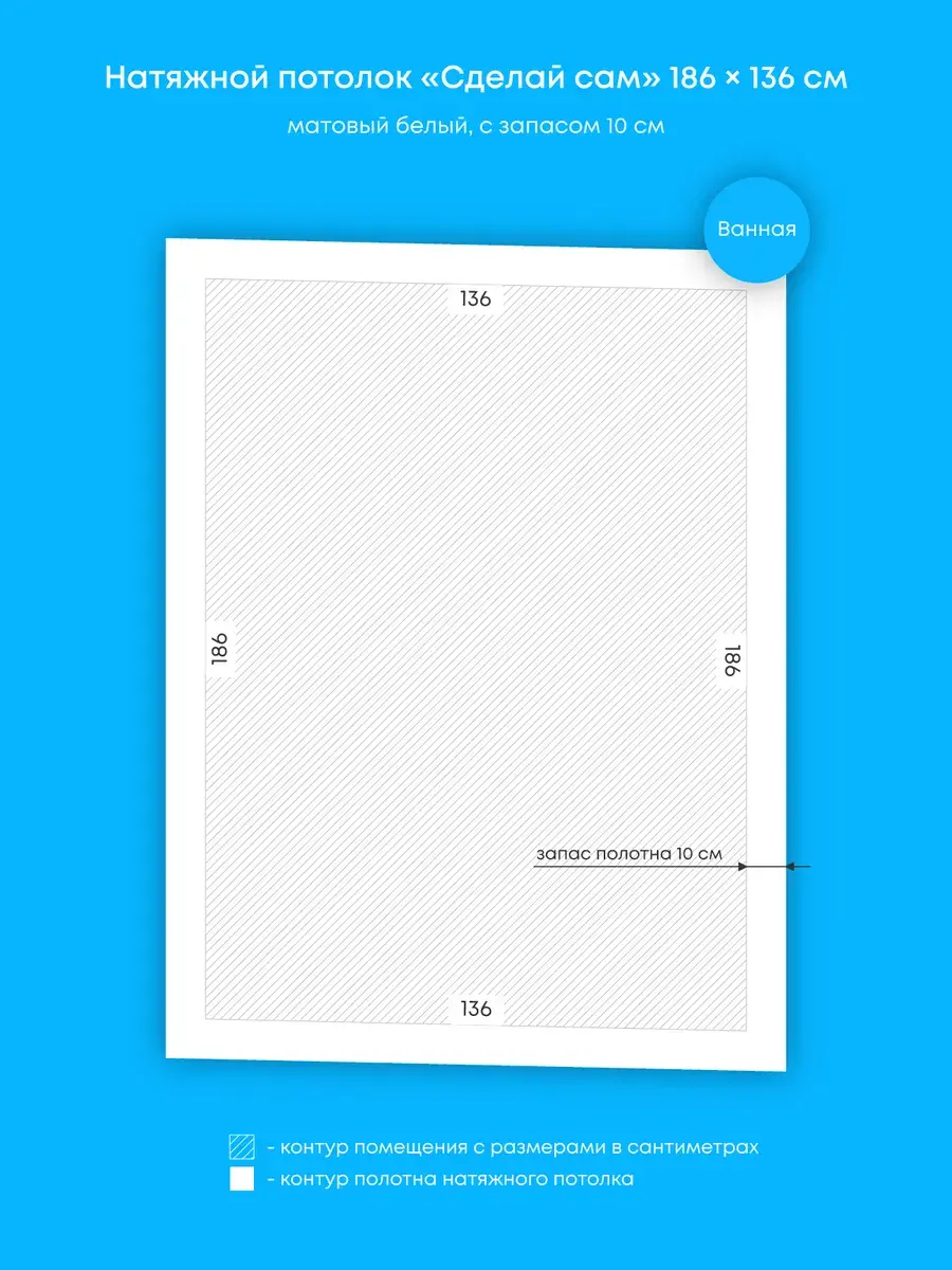Натяжной потолок белый матовый, сделай сам, изготовленный по индивидуальным размерам покупателя, для помещения площадью 2.5 м2