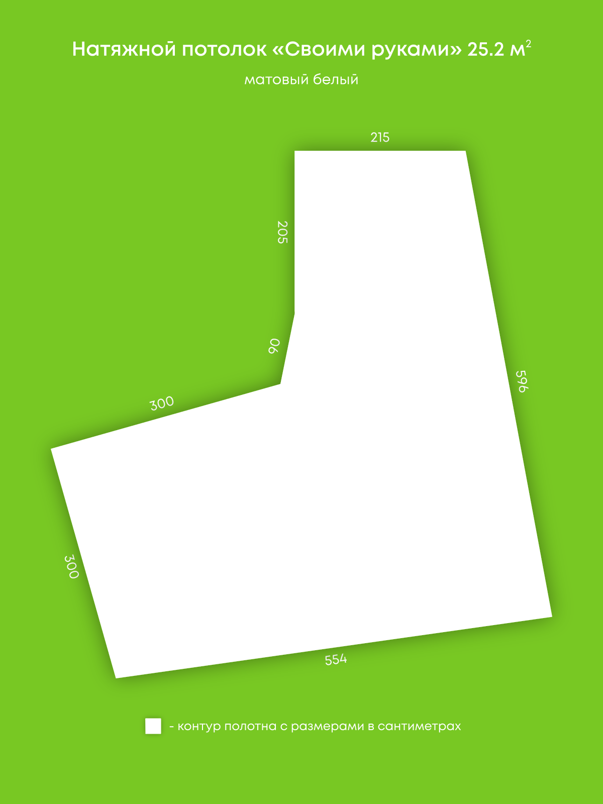 Натяжной потолок белый матовый, изготовленный по индивидуальным размерам покупателя, для помещения площадью 25.2 м2