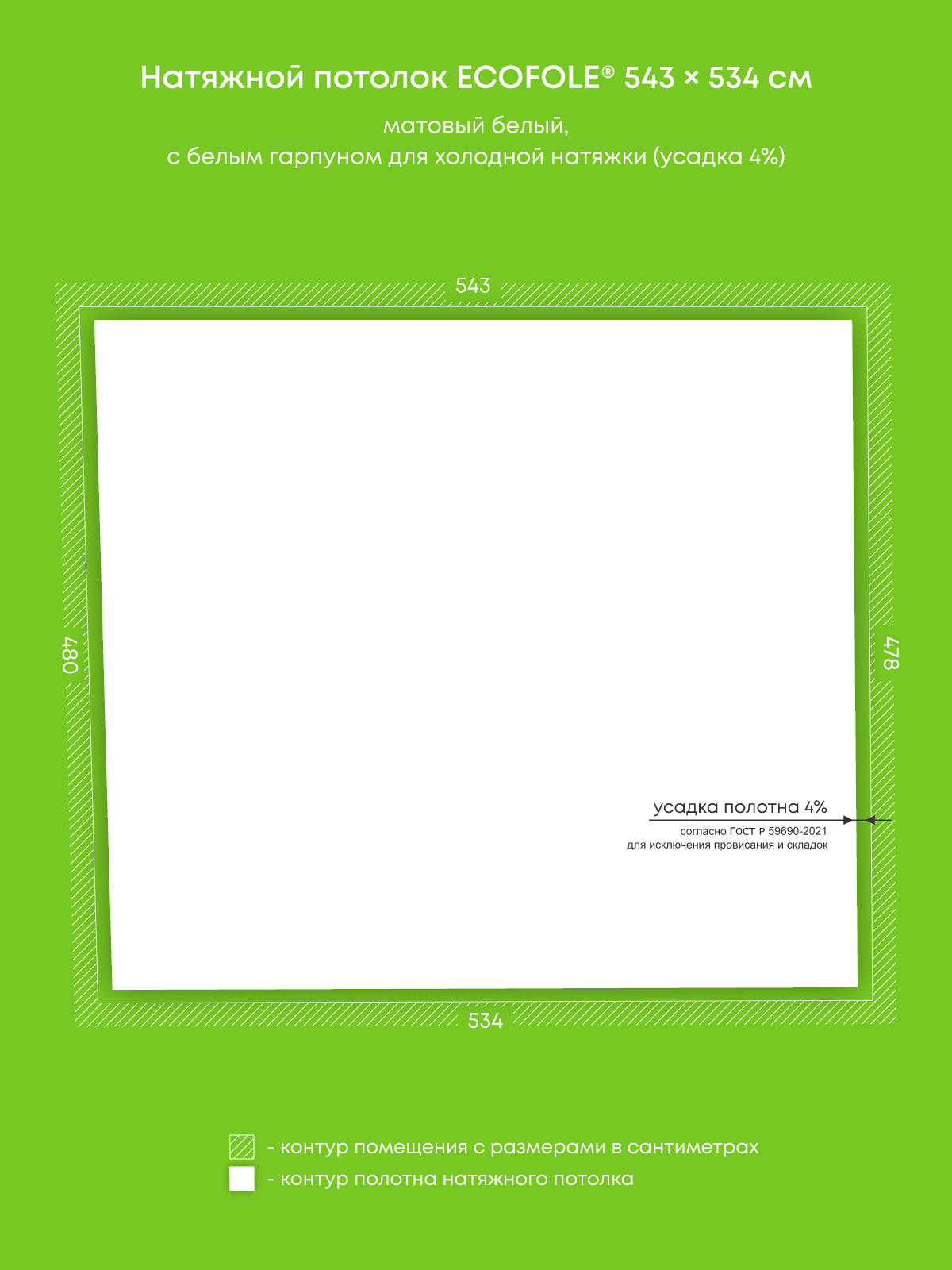 Натяжной потолок белый матовый, изготовленный по индивидуальным размерам покупателя, для комнаты площадью 25.8 м2
