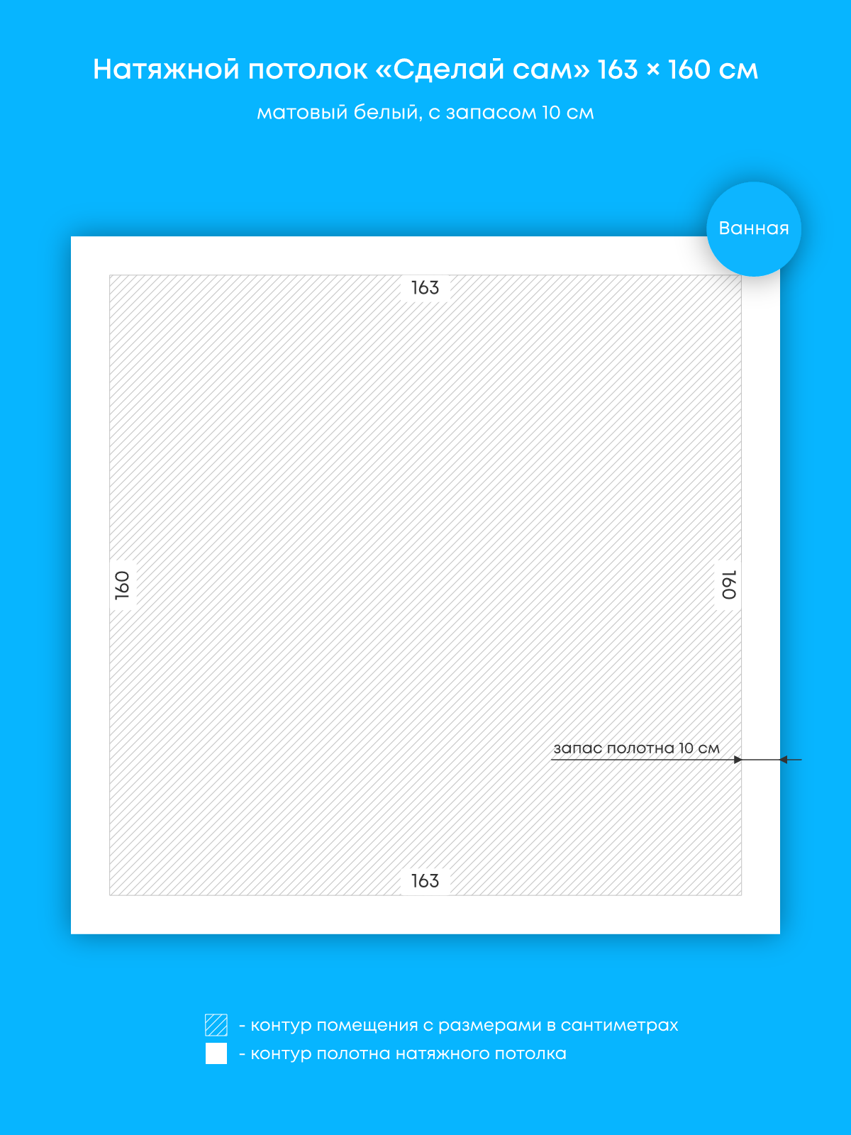 Натяжной потолок белый матовый, сделай сам, изготовленный по индивидуальным размерам покупателя, для помещения площадью 2.6 м2