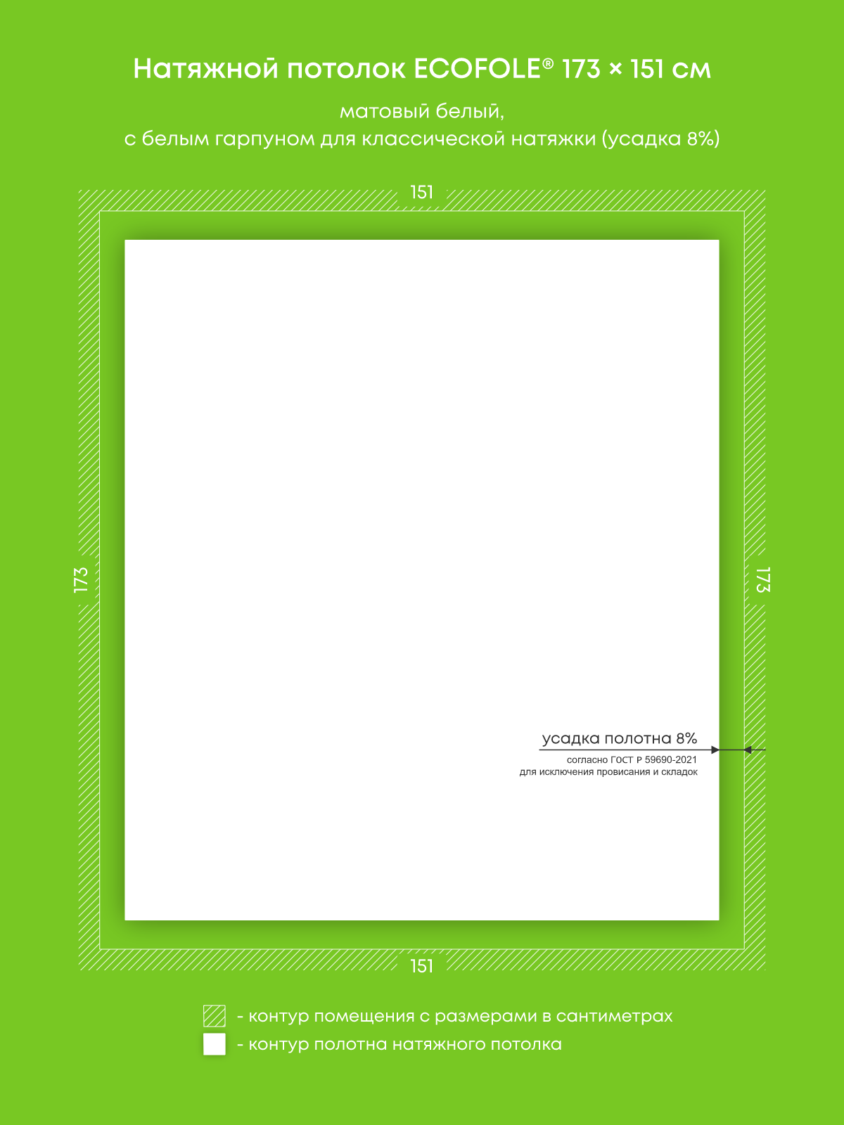 Натяжной потолок белый матовый, изготовленный по индивидуальным размерам покупателя, для помещения площадью 2.6 м2