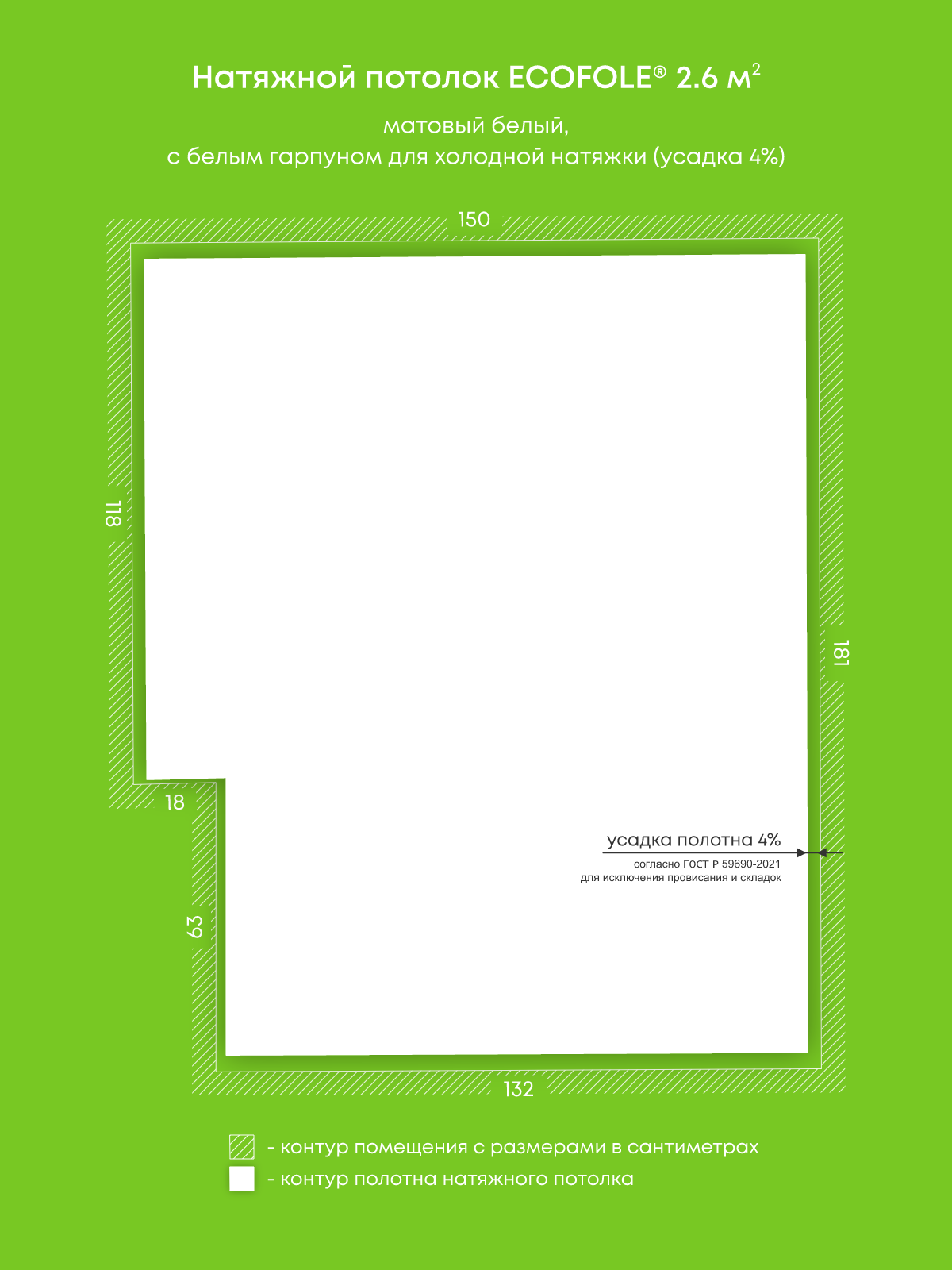 Матовый натяжной потолок 2.6 м2