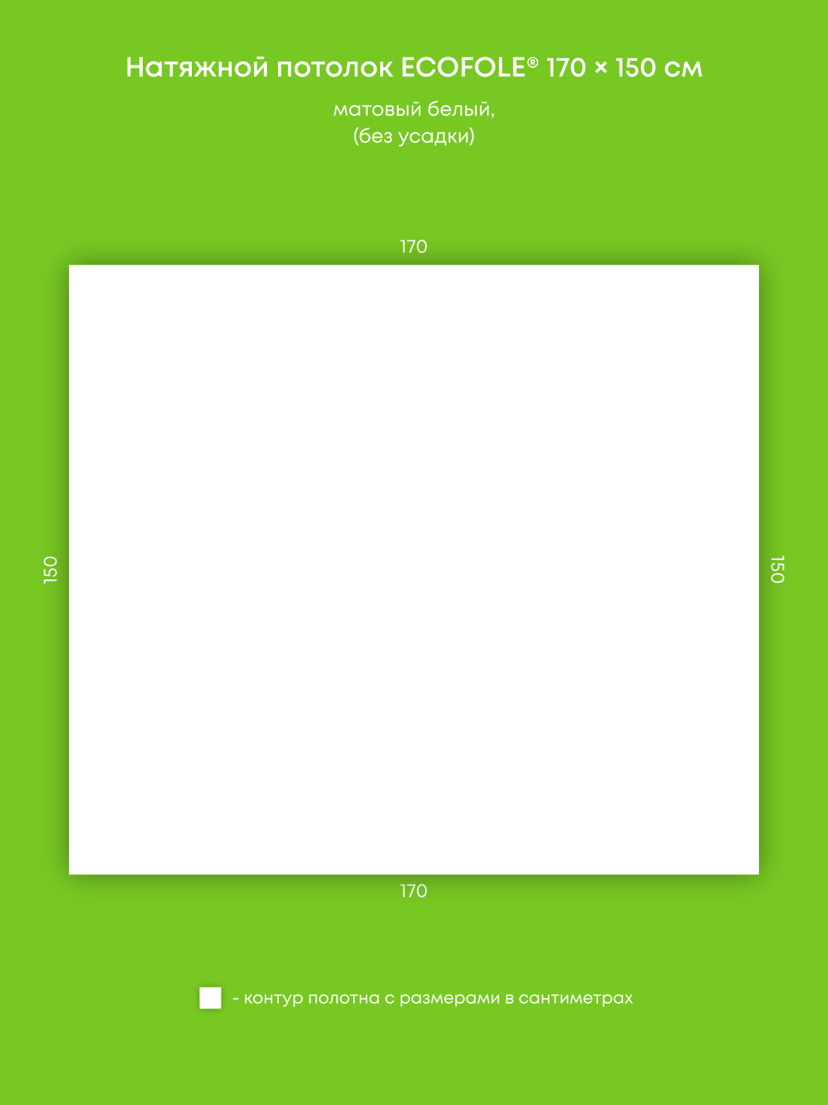 Натяжной потолок белый матовый, изготовленный по индивидуальным размерам покупателя, для помещения площадью 2.6 м2
