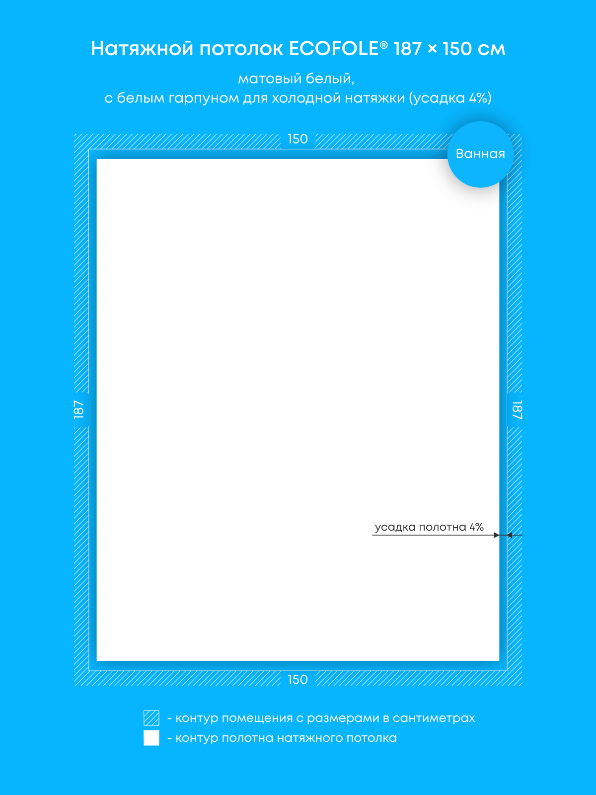 Натяжной потолок белый матовый, холодной натяжки, изготовленный по индивидуальным размерам покупателя, для помещения площадью 2.8 м2