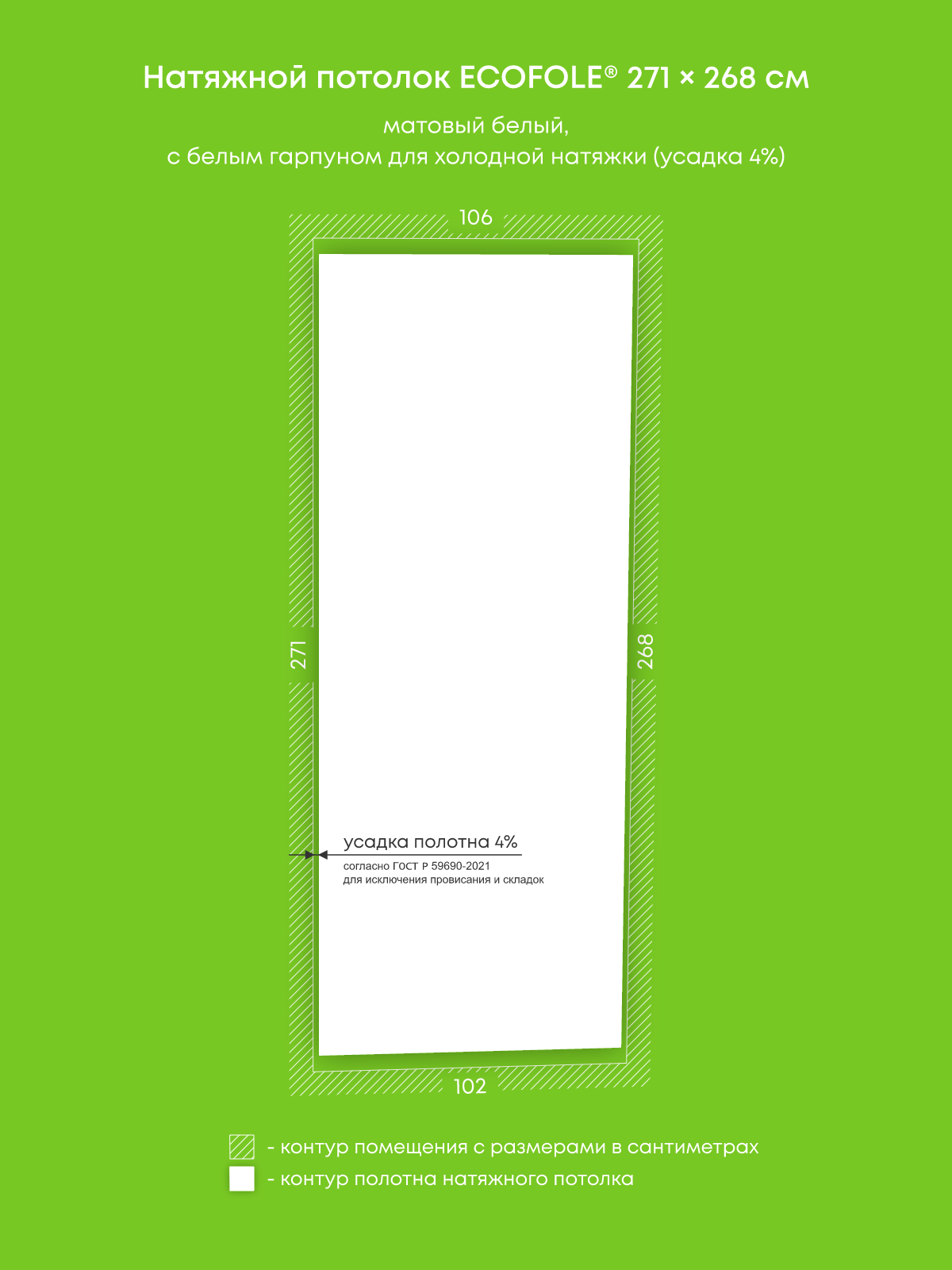Натяжной потолок белый матовый, изготовленный по индивидуальным размерам покупателя, для помещения площадью 2.8 м2