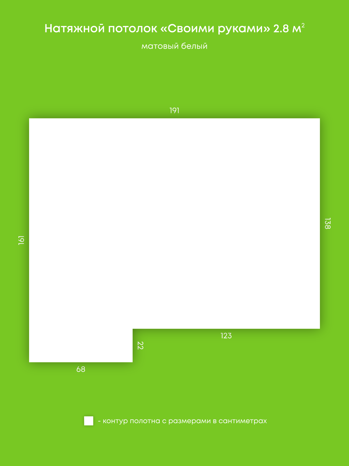 Натяжной потолок белый матовый, изготовленный по индивидуальным размерам покупателя, для помещения площадью 2.8 м2