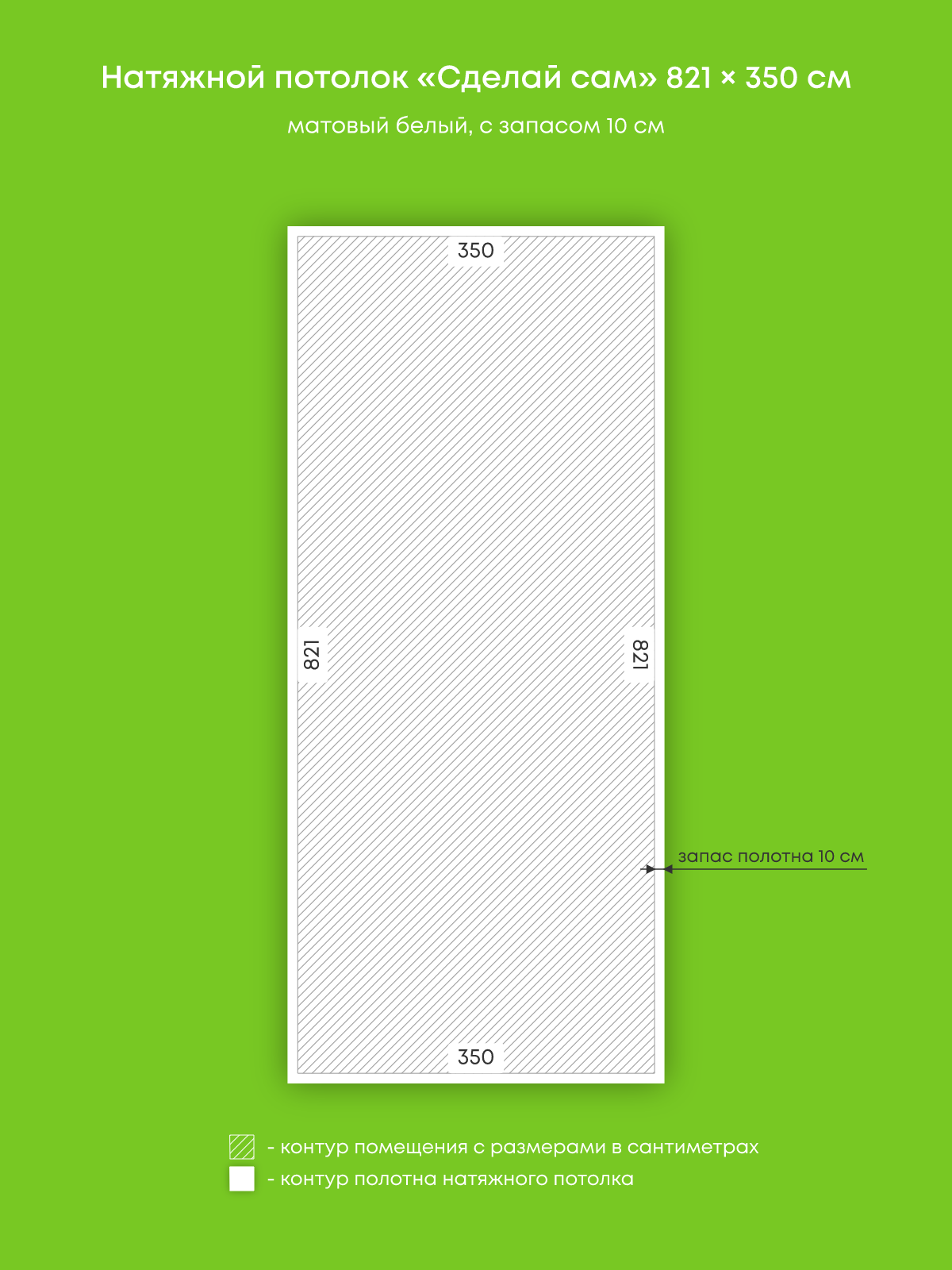 Натяжной потолок белый матовый, изготовленный по индивидуальным размерам покупателя, для кухни площадью 28.7 м2