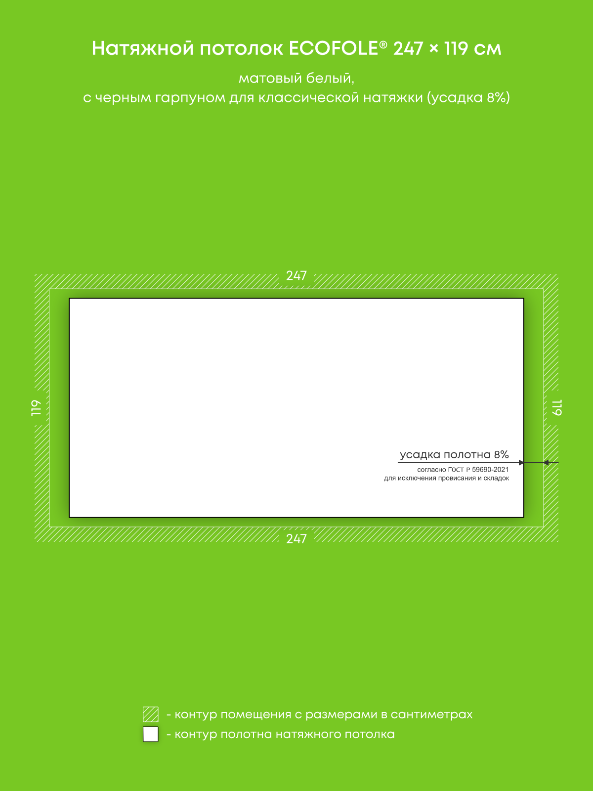 Натяжной потолок белый матовый, изготовленный по индивидуальным размерам покупателя, для помещения площадью 2.9 м2