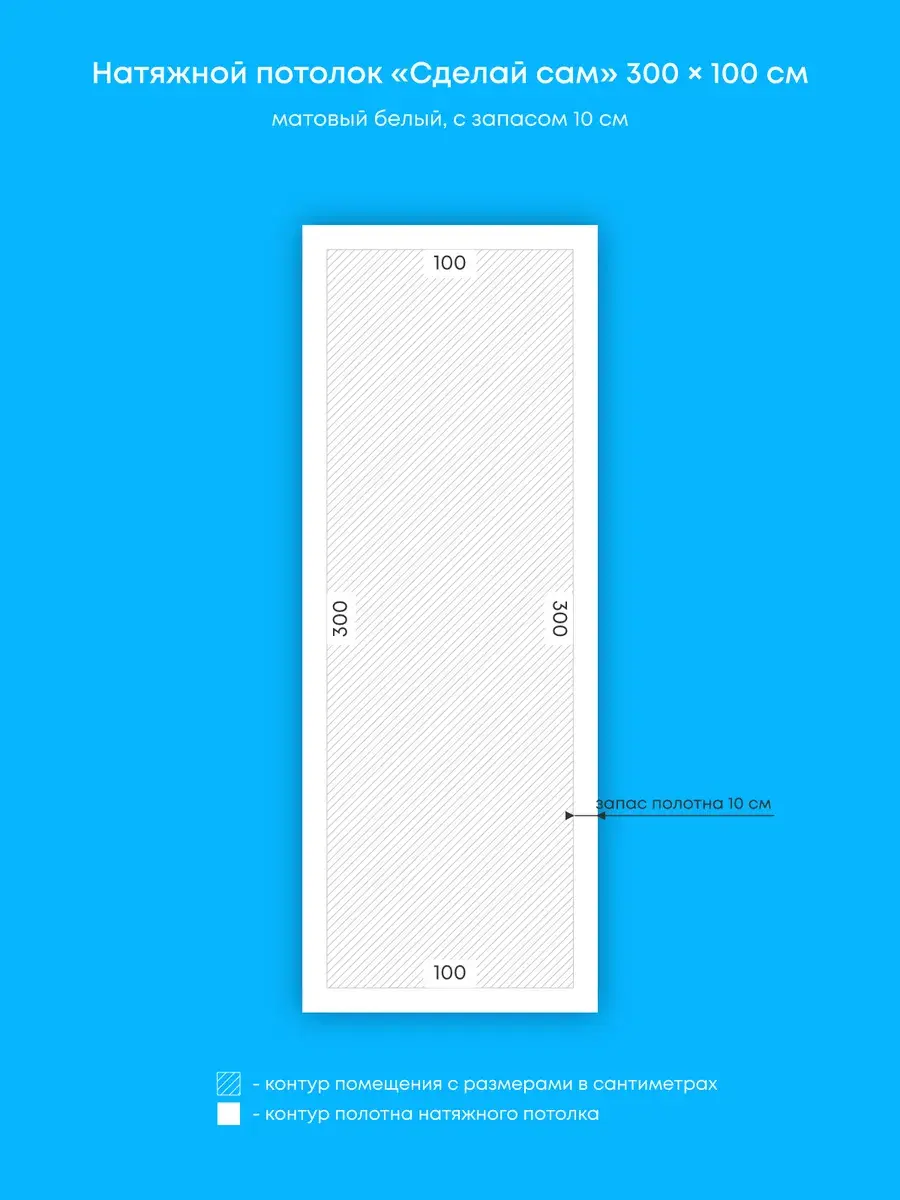 Натяжной потолок белый матовый, сделай сам, изготовленный по индивидуальным размерам покупателя, для помещения площадью 3 м2