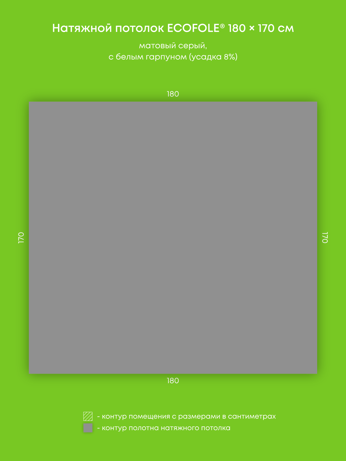 Натяжной потолок серый матовый, изготовленный по индивидуальным размерам покупателя, для помещения площадью 3.1 м2