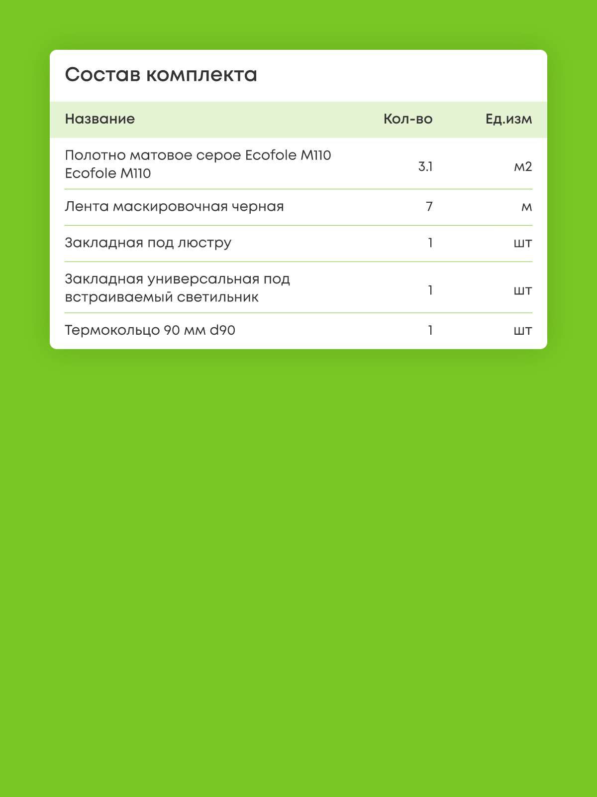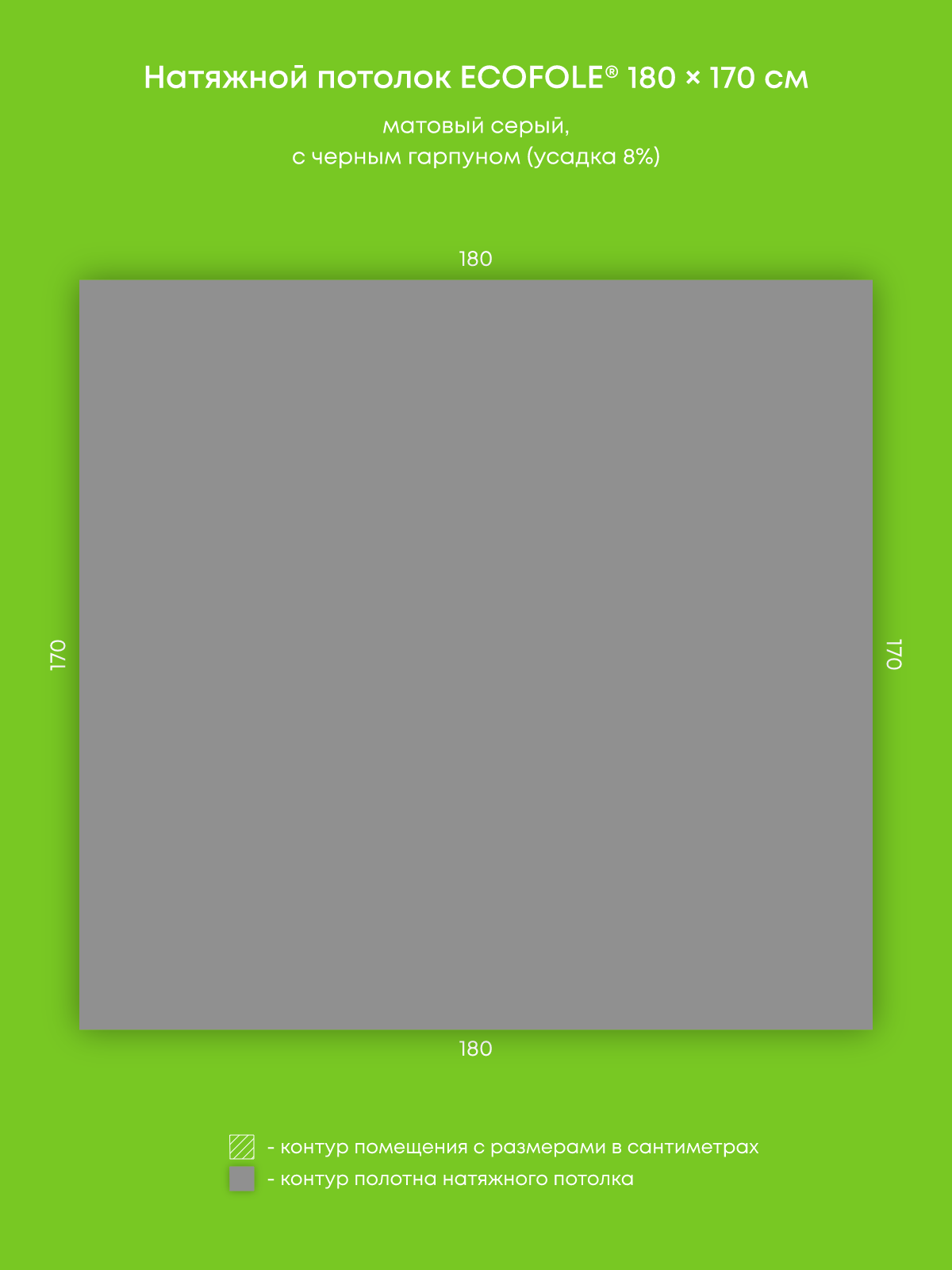 Натяжной потолок серый матовый, изготовленный по индивидуальным размерам покупателя, для помещения площадью 3.1 м2