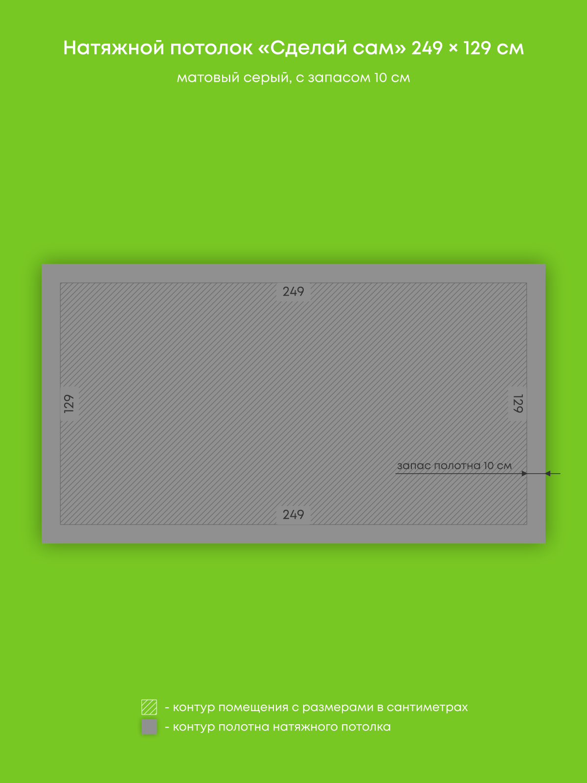 Натяжной потолок серый матовый, изготовленный по индивидуальным размерам покупателя, для помещения площадью 3.2 м2