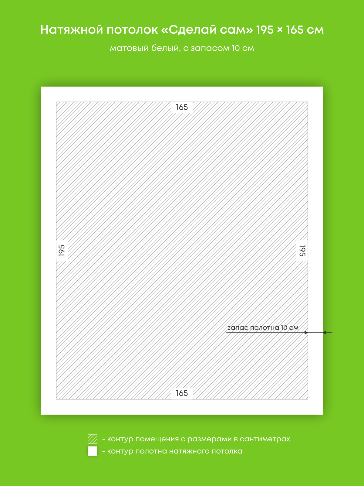 Натяжной потолок белый матовый, изготовленный по индивидуальным размерам покупателя, для комнаты площадью 3.2 м2