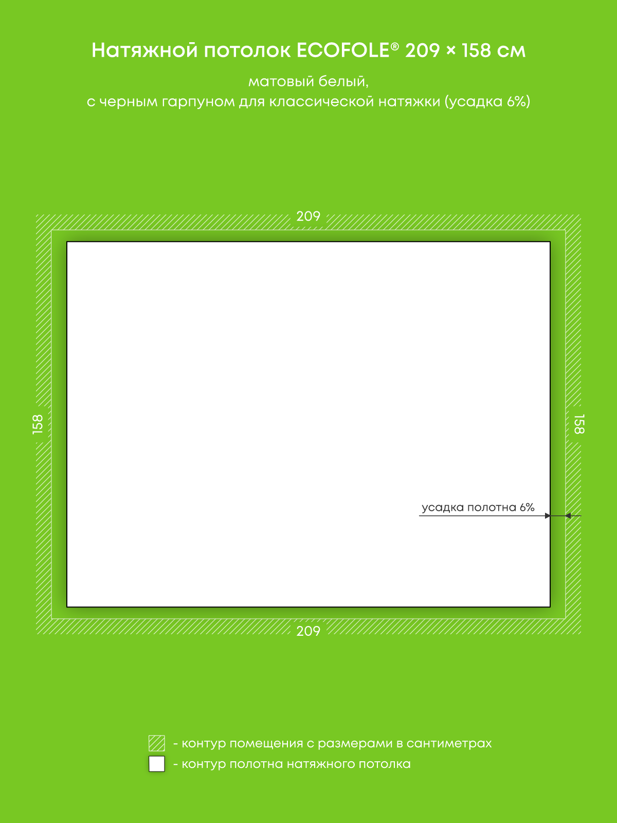 Натяжной потолок белый матовый, изготовленный по индивидуальным размерам покупателя, для помещения площадью 3.3 м2