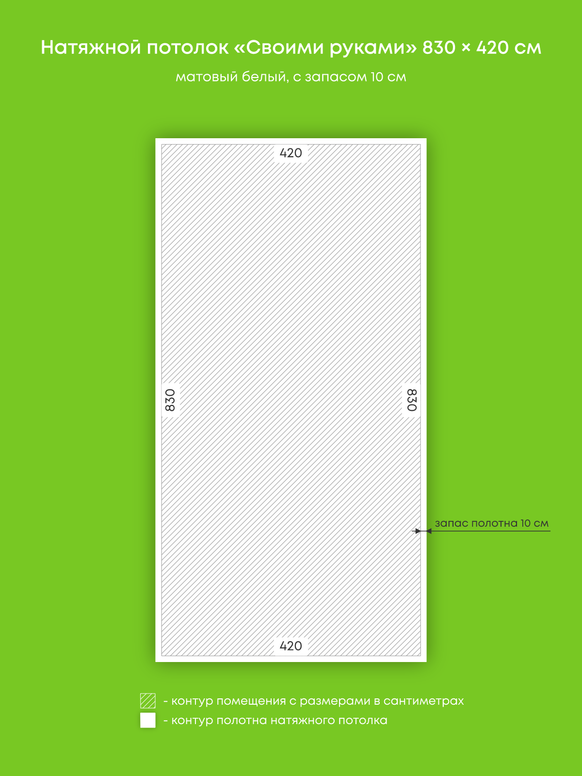Натяжной потолок белый матовый, изготовленный по индивидуальным размерам покупателя, для кухни площадью 34.9 м2