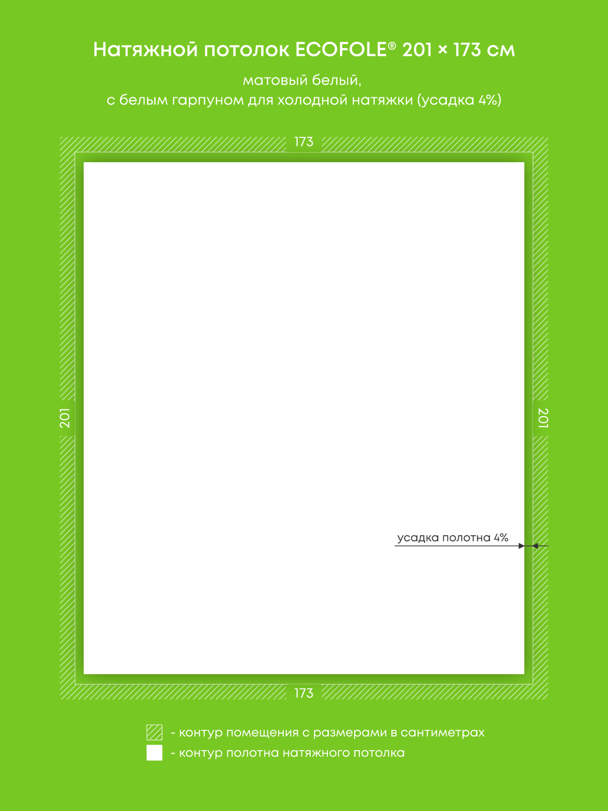 Натяжной потолок белый матовый, холодной натяжки, изготовленный по индивидуальным размерам покупателя, для помещения площадью 3.5 м2