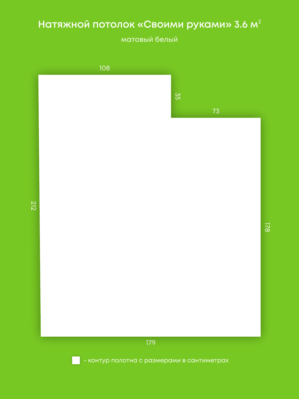Натяжной потолок белый матовый, изготовленный по индивидуальным размерам покупателя, для помещения площадью 3.6 м2