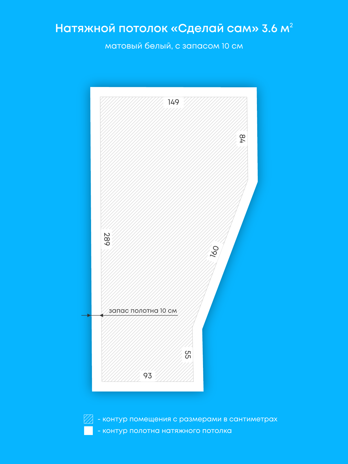 Натяжной потолок белый матовый, изготовленный по индивидуальным размерам покупателя, для помещения площадью 3.6 м2