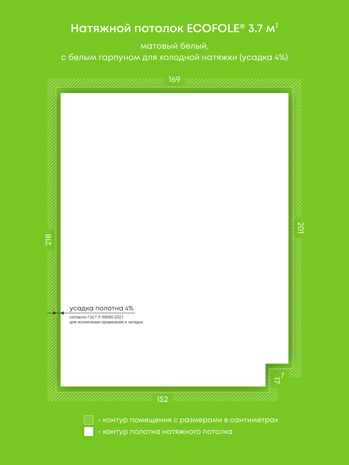 Матовый натяжной потолок 3.7 м2