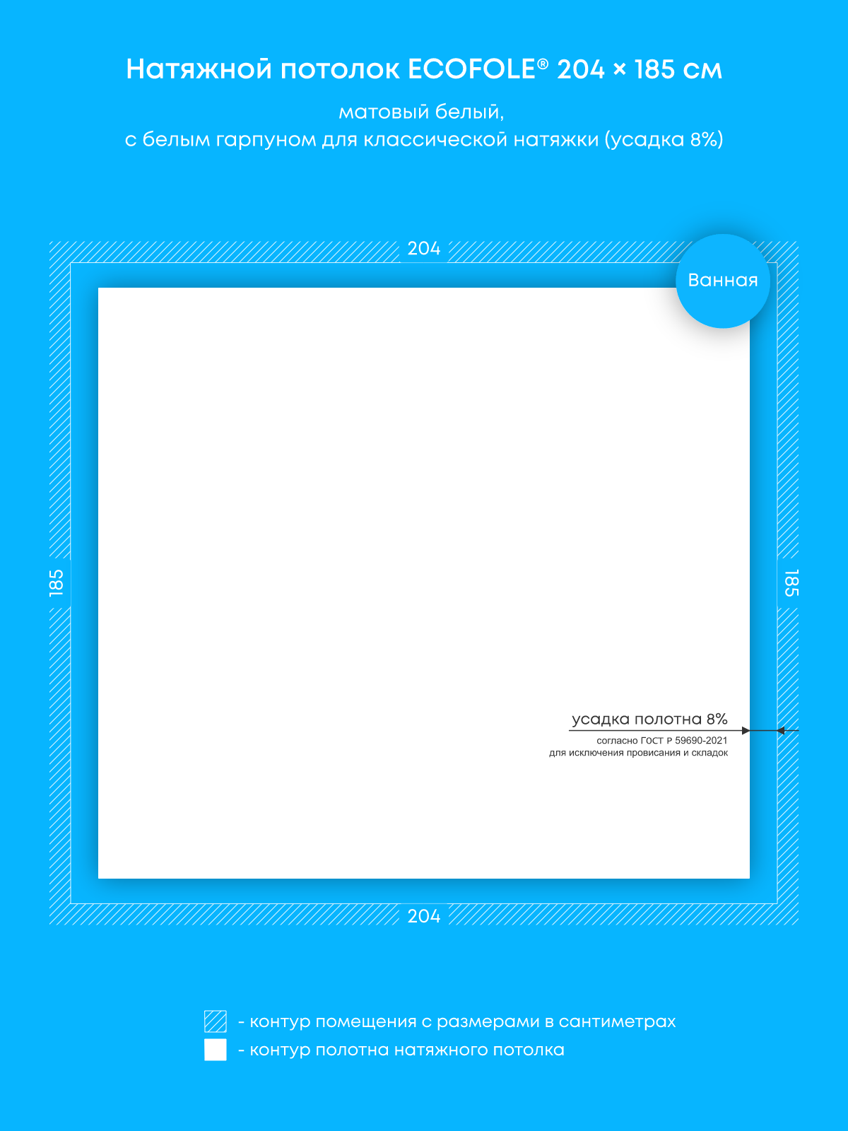 Натяжной потолок белый матовый, классической натяжки, изготовленный по индивидуальным размерам покупателя, для помещения площадью 3.8 м2