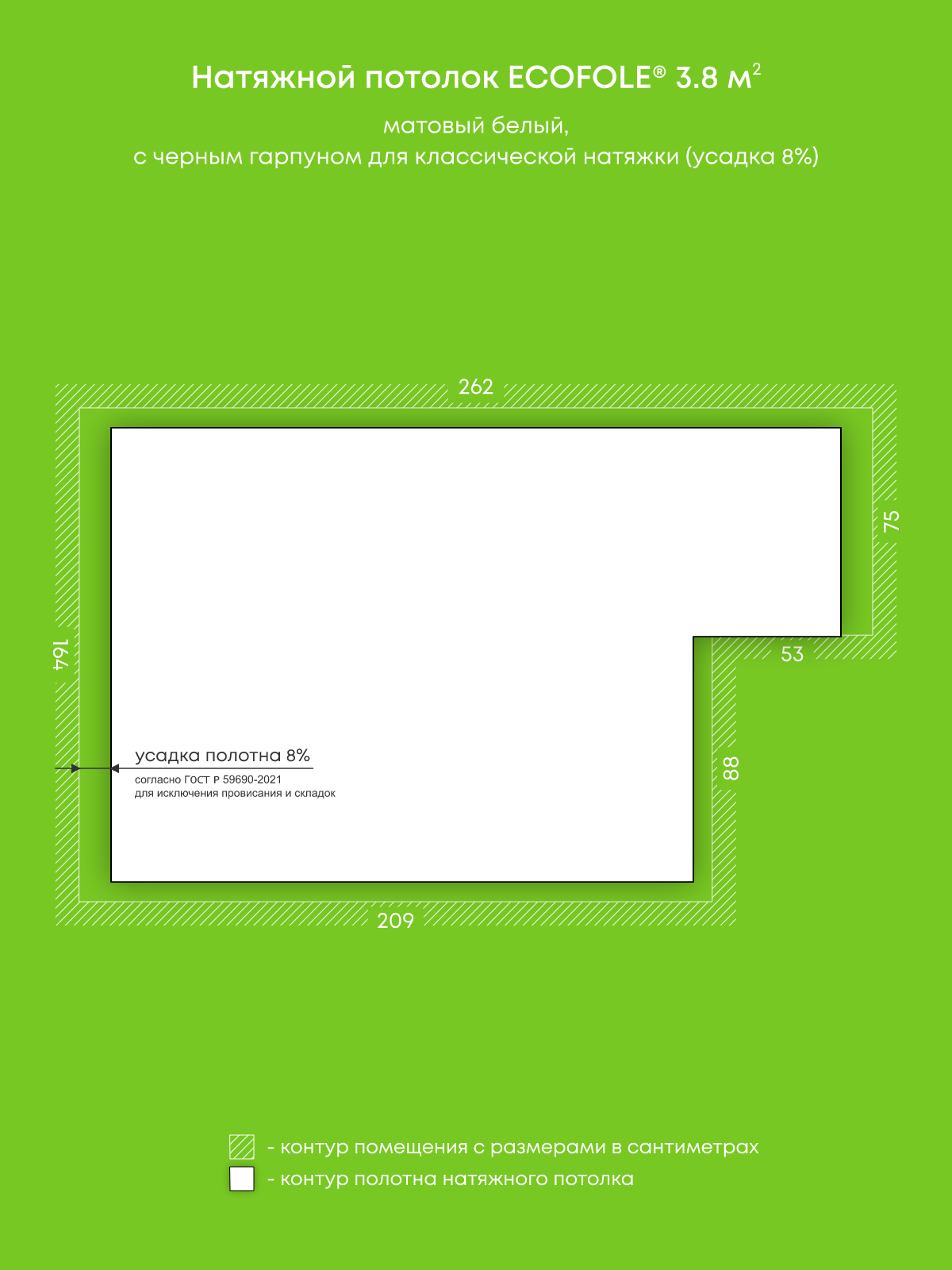 Матовый натяжной потолок 3.8 м2