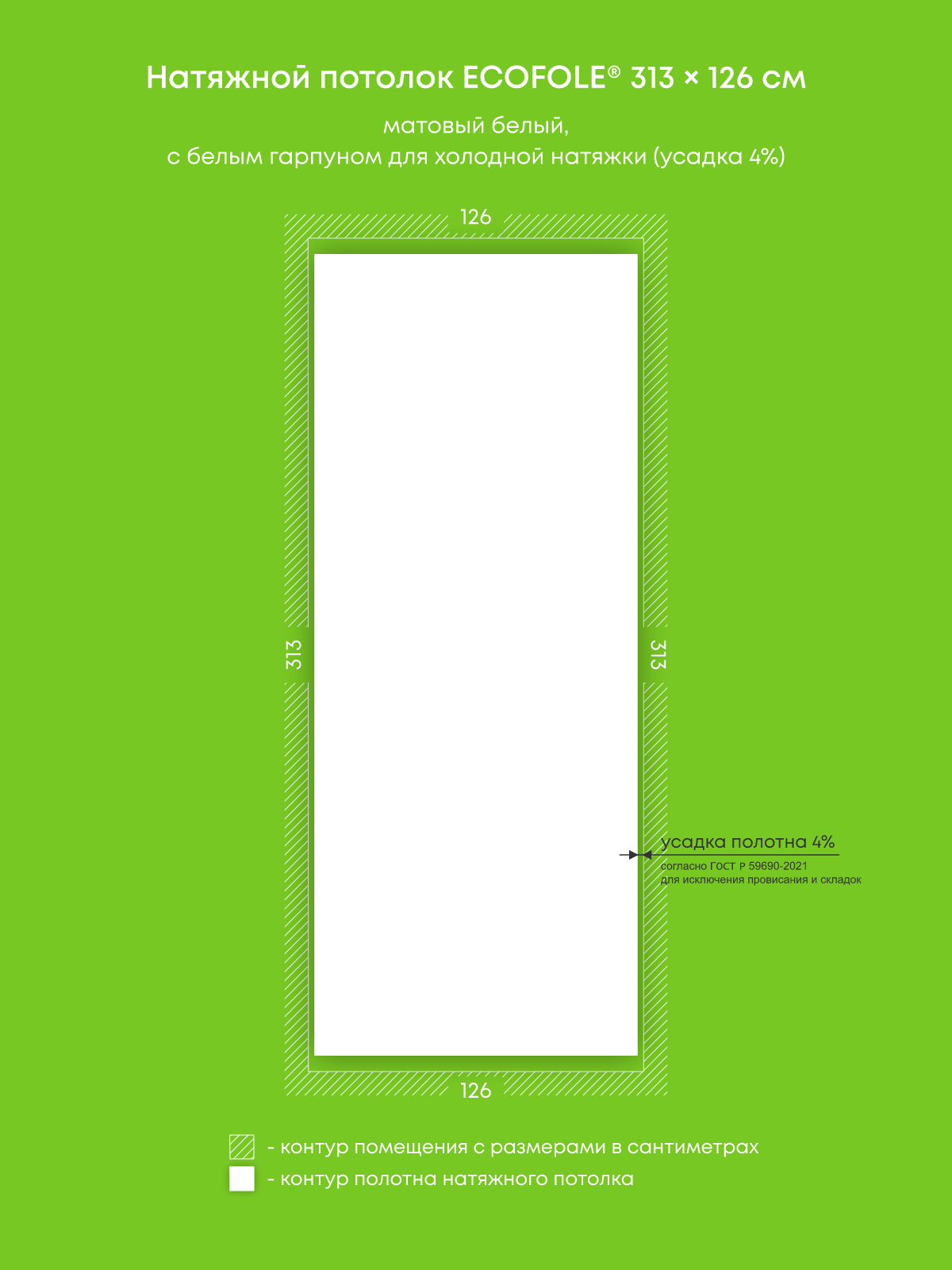 Натяжной потолок белый матовый, изготовленный по индивидуальным размерам покупателя, для комнаты площадью 3.9 м2