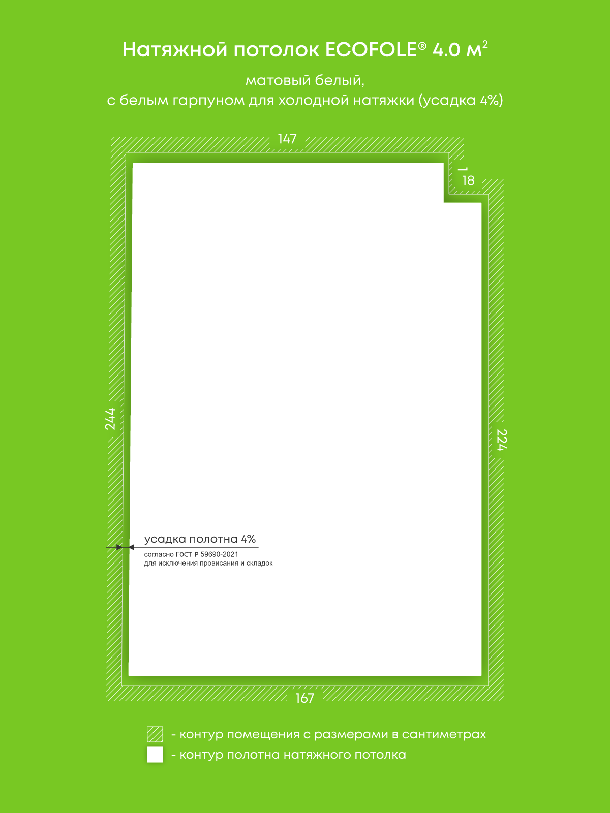 Матовый натяжной потолок 4 м2