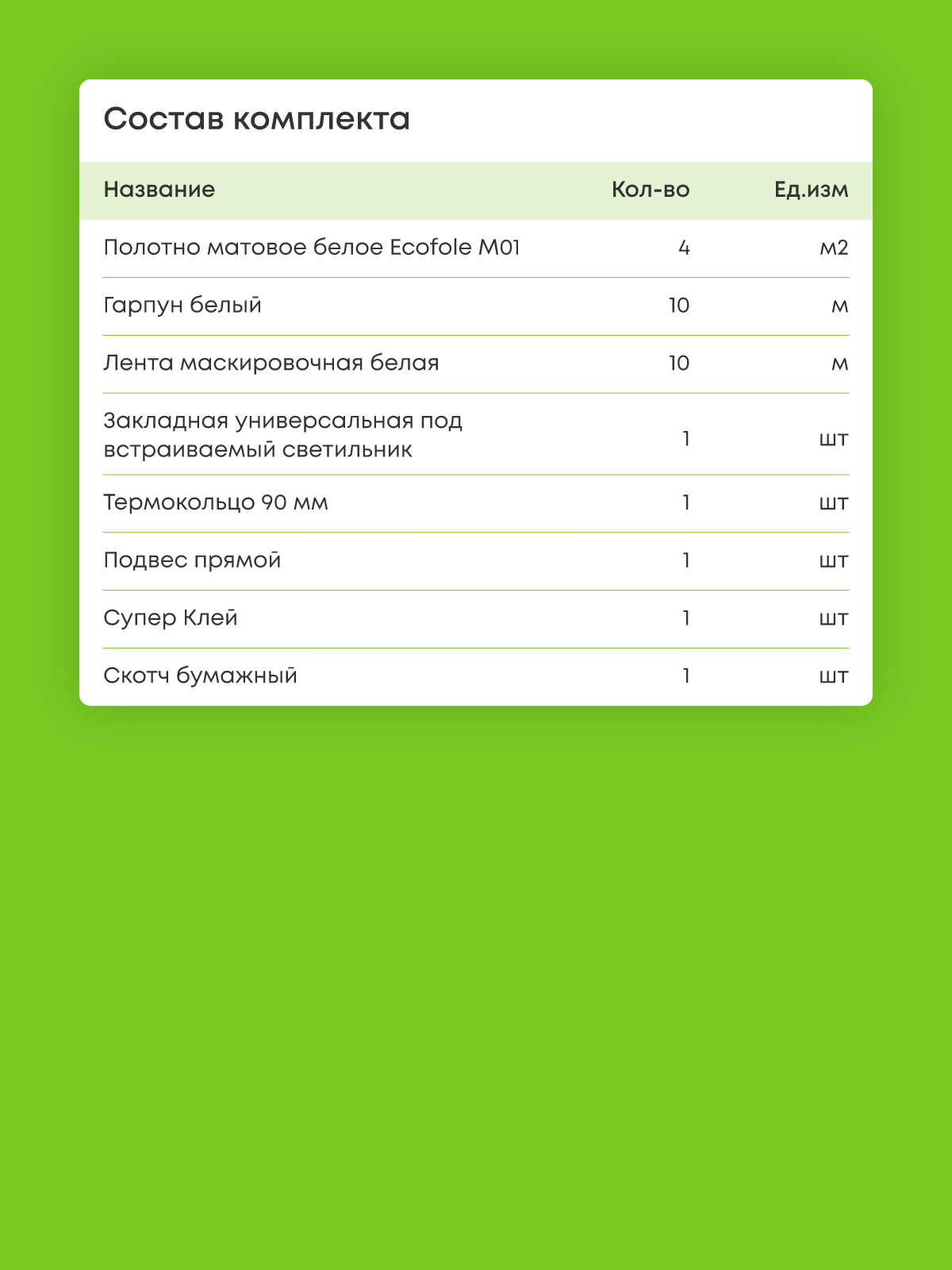 Натяжной потолок белый матовый, изготовленный по индивидуальным размерам покупателя, для помещения площадью 4 м2