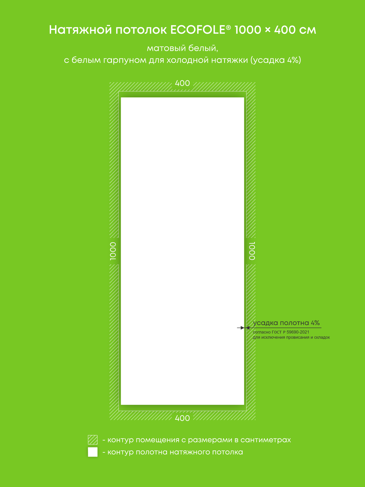 Натяжной потолок белый матовый, изготовленный по индивидуальным размерам покупателя, для кухни площадью 40 м2