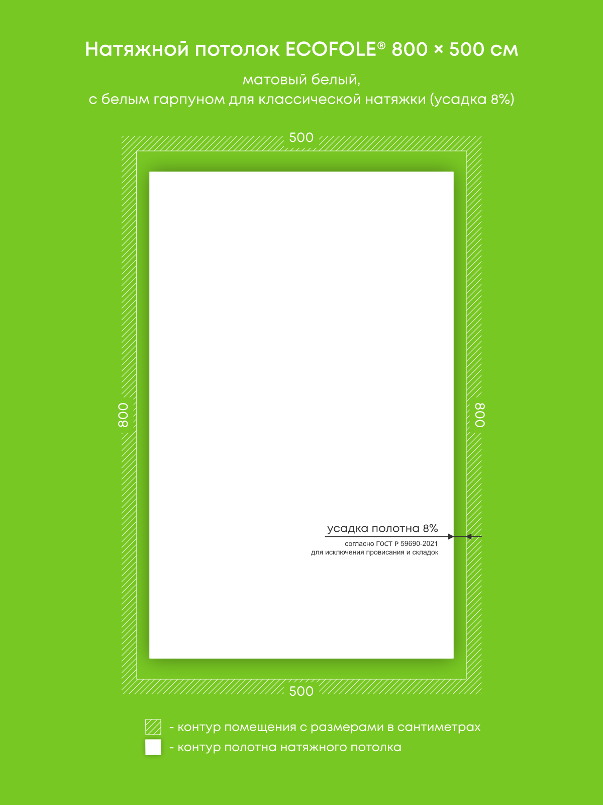 Натяжной потолок белый матовый, изготовленный по индивидуальным размерам покупателя, для кухни площадью 40 м2