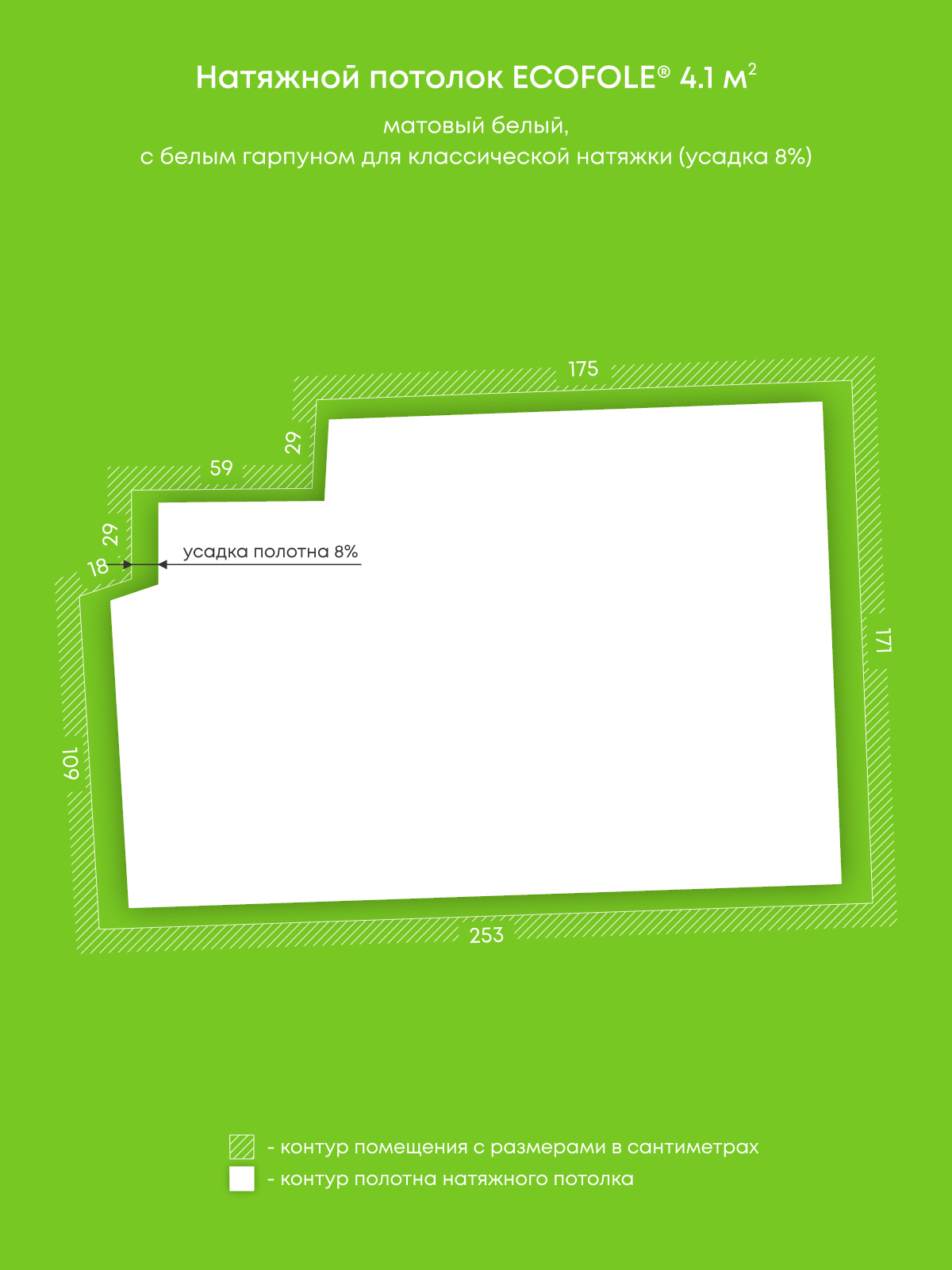 Натяжной потолок белый матовый, изготовленный по индивидуальным размерам покупателя, для помещения площадью 4.1 м2