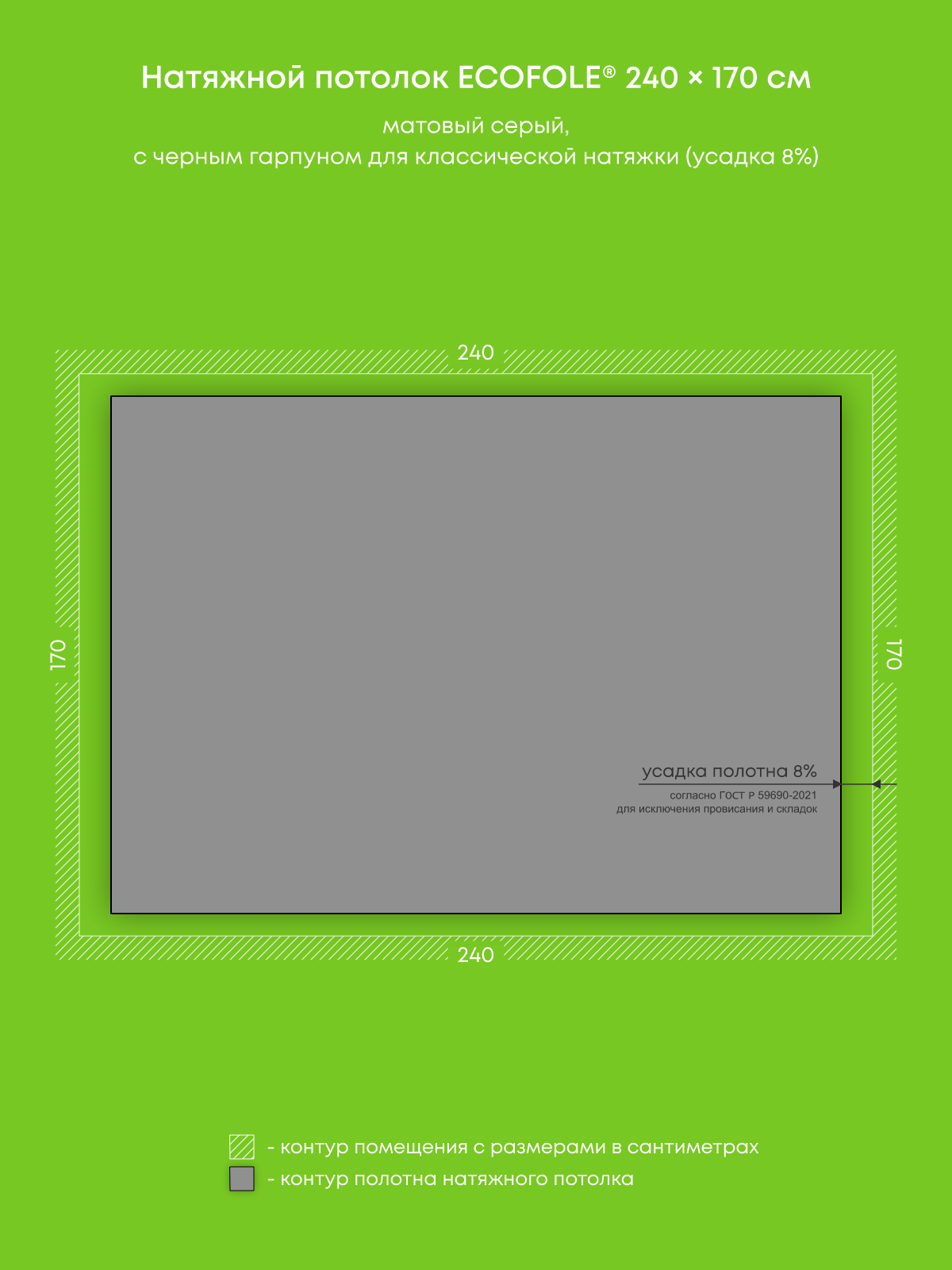 Натяжной потолок серый матовый, изготовленный по индивидуальным размерам покупателя, для ванной площадью 4.1 м2