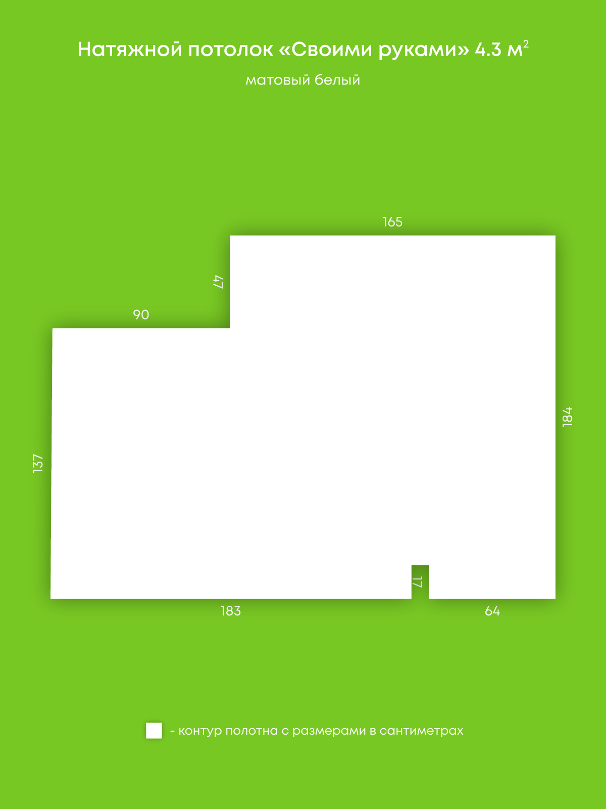 Натяжной потолок белый матовый, изготовленный по индивидуальным размерам покупателя, для помещения площадью 4.3 м2