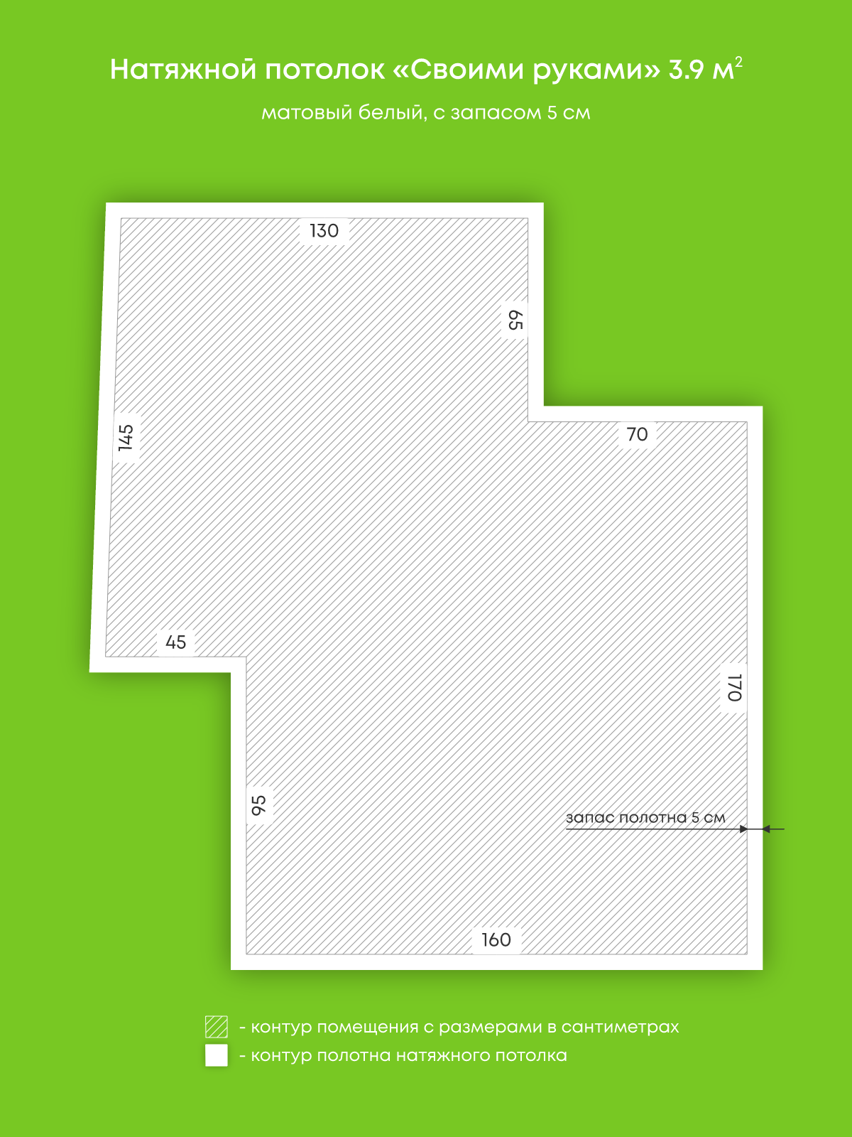 Натяжной потолок белый матовый, изготовленный по индивидуальным размерам покупателя, для помещения площадью 4.3 м2