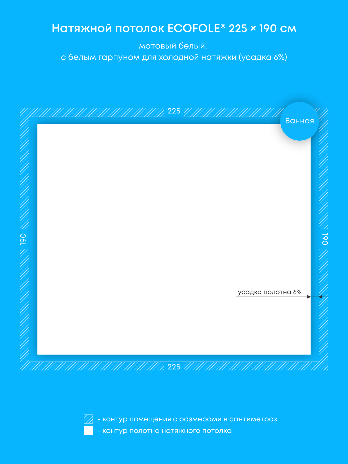 Натяжной потолок белый матовый, холодной натяжки, изготовленный по индивидуальным размерам покупателя, для помещения площадью 4.3 м2